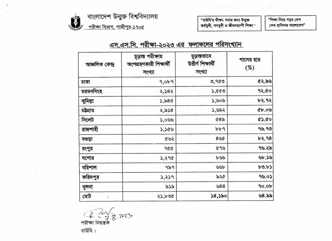 বাউবি এসএসসি রেজাল্ট ২০২৩ বিশ্লেষণ