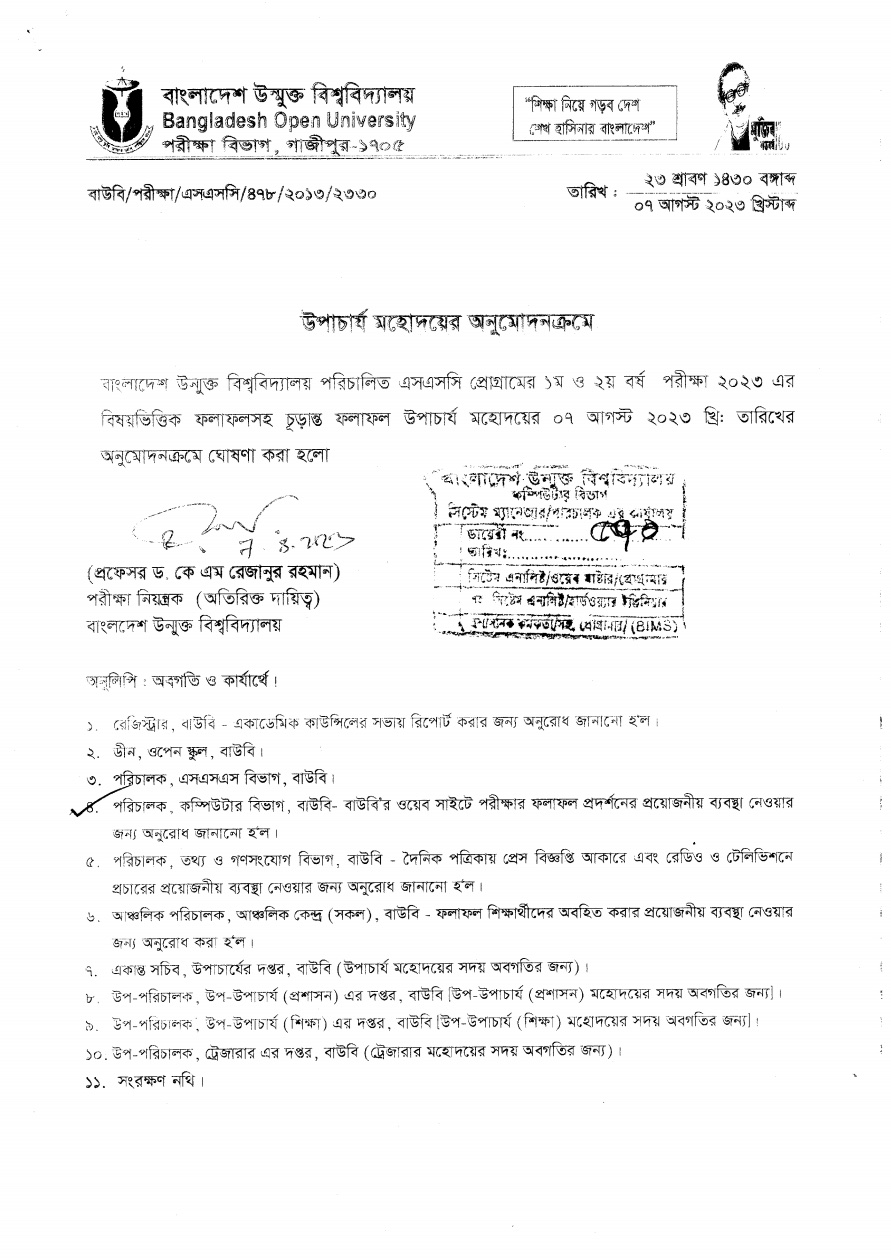 বাংলাদেশ উন্মুক্ত বিশ্ববিদ্যালয়ের এসএসসি ফলাফল ২০২৩ দেখুন এখানে