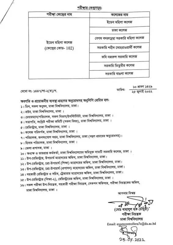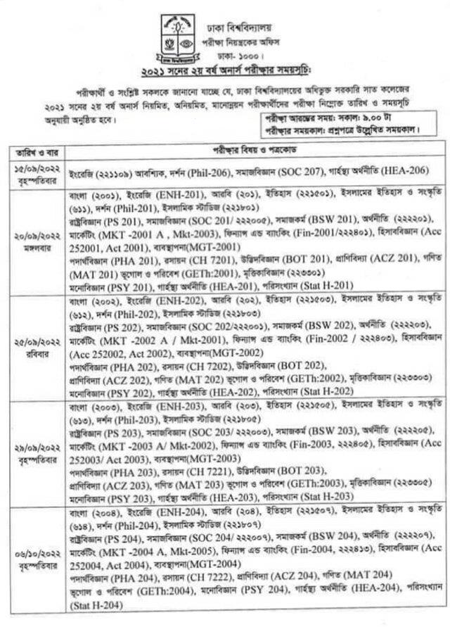ঢাবি অধিভুক্ত ৭ কলেজের ২০১৯ সালের অনার্স ২য় বর্ষের পরীক্ষার রুটিন ও কেন্দ্র তালিকা