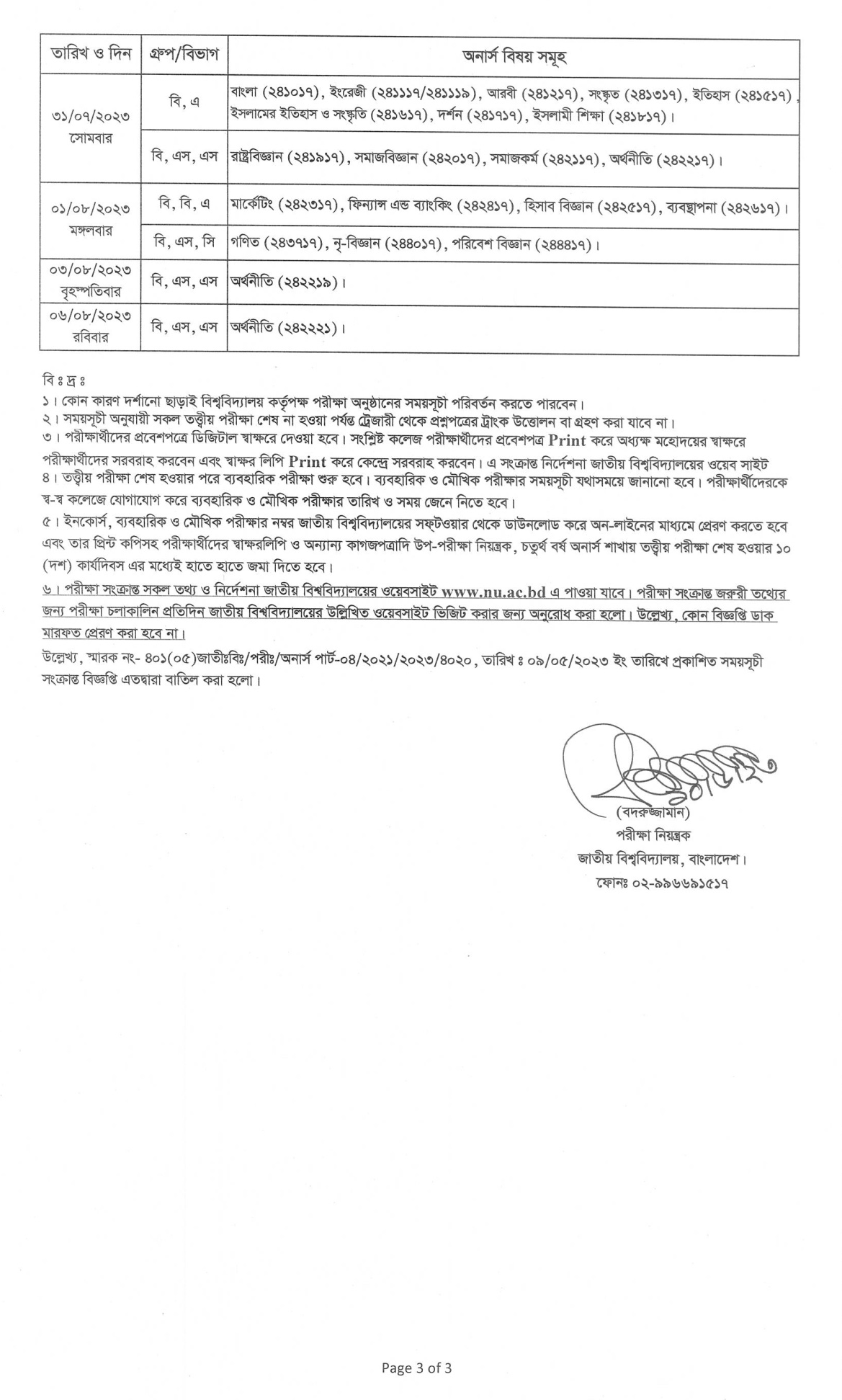 অনার্স ৪র্থ বর্ষ পরীক্ষার সময়সূচি ২০২৩ বিশেষ দ্রষ্টব্য: