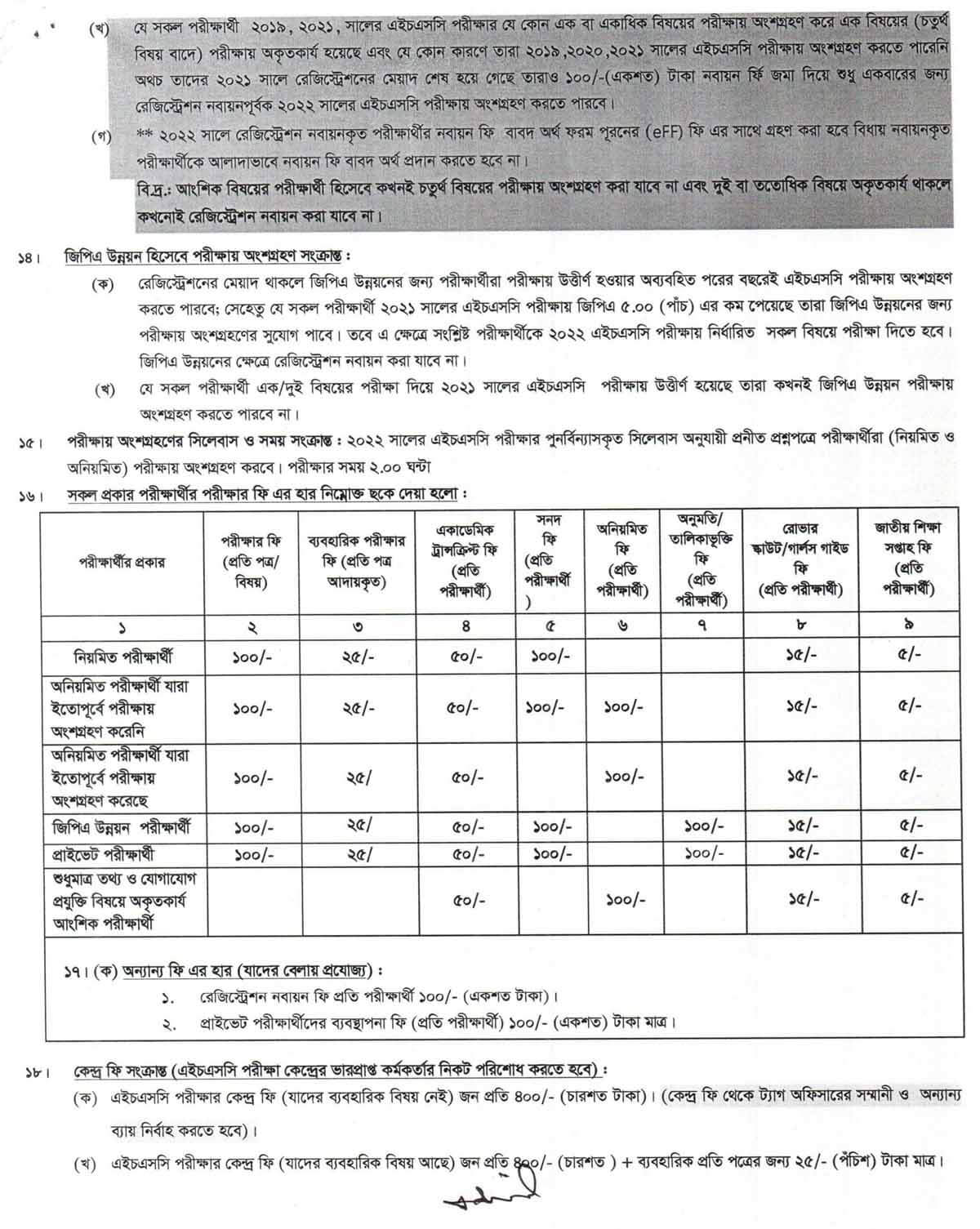 বিশেষ দ্রষ্টব্য: মানবিক ও ব্যবসায় শিক্ষা শাখায় কোন পরীক্ষার্থীর ৪র্থ বিষয়ে ব্যবহারিক পরীক্ষা থাকলে বর্ণি ত ফি এর সাথে অতিরিক্ত ১৪০.০০ টাকা যোগ হবে। এবং মানবিক ও ব্যবসায় শিক্ষা শাখায় কোন পরীক্ষার্থীর নৈর্বাচনিক বিষয়ে ব্যবহারিক থাকলে বিষয় প্রিতি আরও ১৪০.০০ টাকা যোগ হবে ।