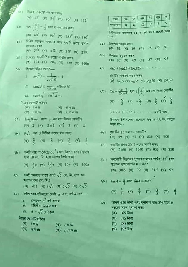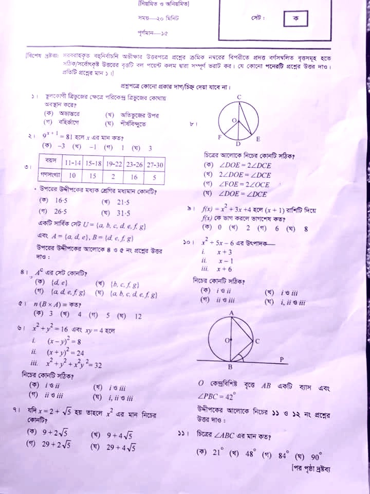 দাখিল গণিত MCQ প্রশ্ন ও উত্তর ২০২২
