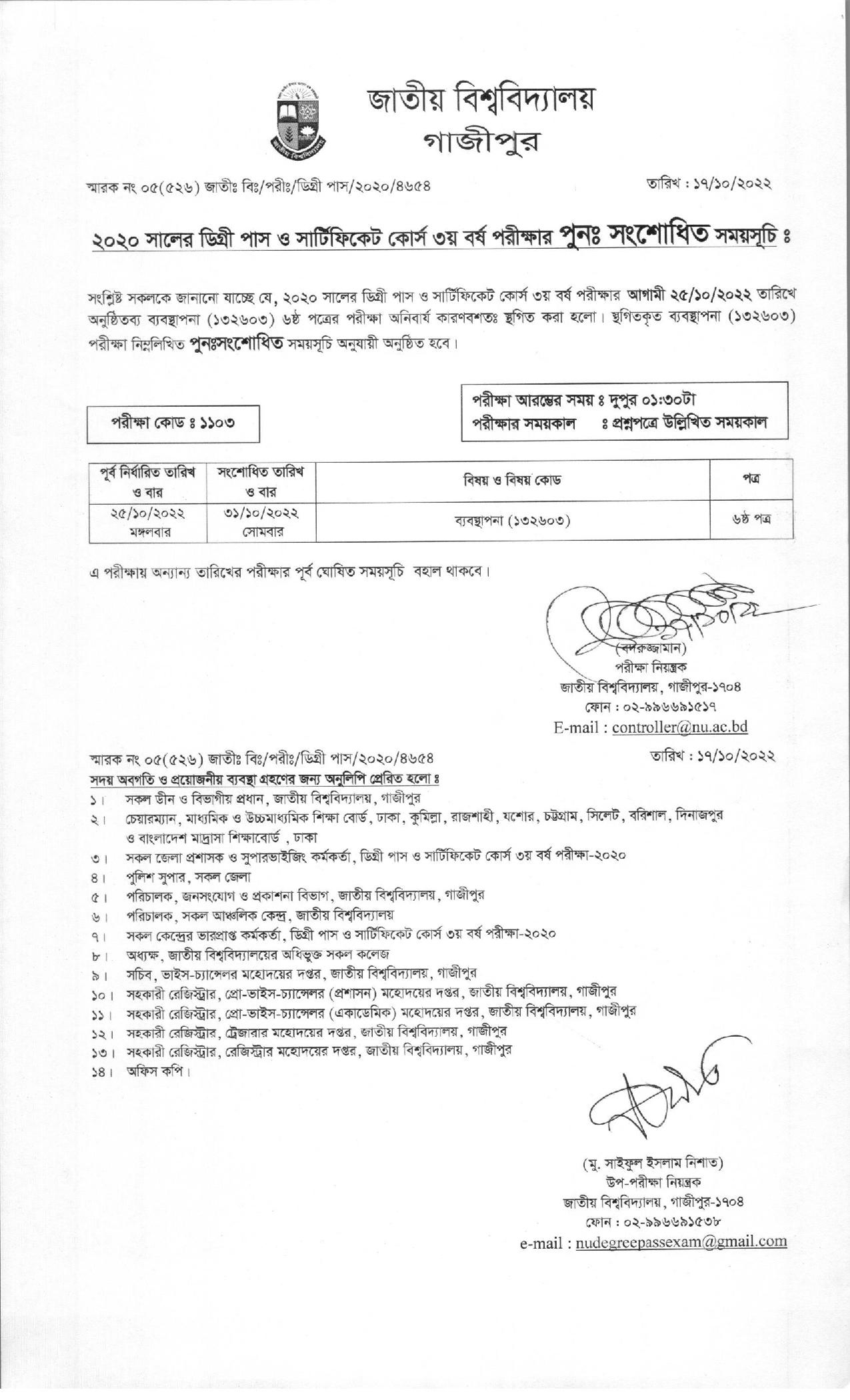 ডিগ্রি ৩য় বর্ষ পরীক্ষার পুন: সংশোধিত রুটিন ২০২২