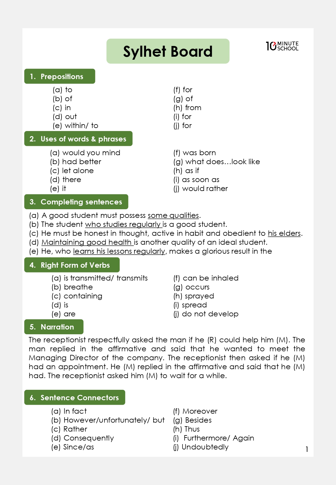 এইচএসসি ইংরেজি ২য় পত্র গ্রামার অংশের সমাধান ২০২২ নিয়ে এই পোষ্টে আমরা আলোচনা করবো। এবারের সংক্ষিপ্ত সিলেবাস অনুসারে Preposition, Special Uses, Completing Sentence, Right Form of Verb, Narration, Sentence Connectors, Grammar ইত্যাদি অংশের সমাধান এখানে দেওয়া হবে।