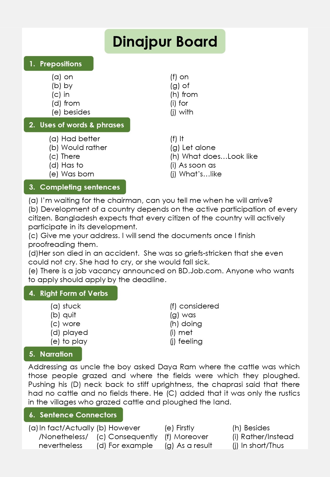 দিনাজপুর বোর্ড এইচএসসি ইংরেজি ২য় পত্র প্রশ্ন সমাধান ২০২২