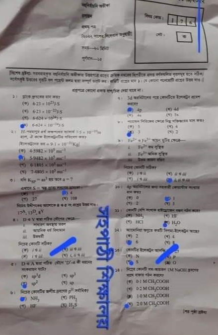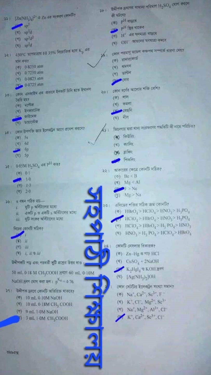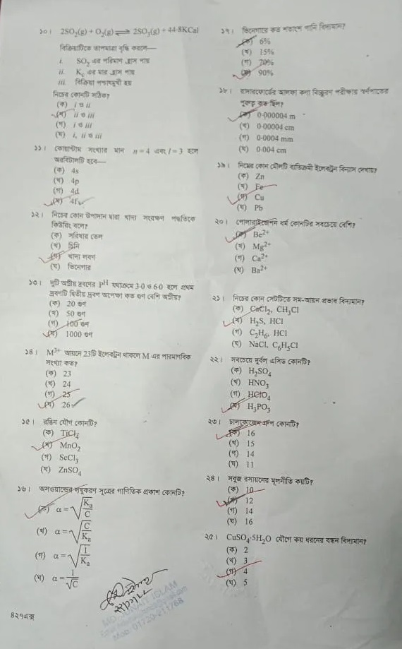 | বিষয়ের নাম | রসায়ন ১ম পত্র |