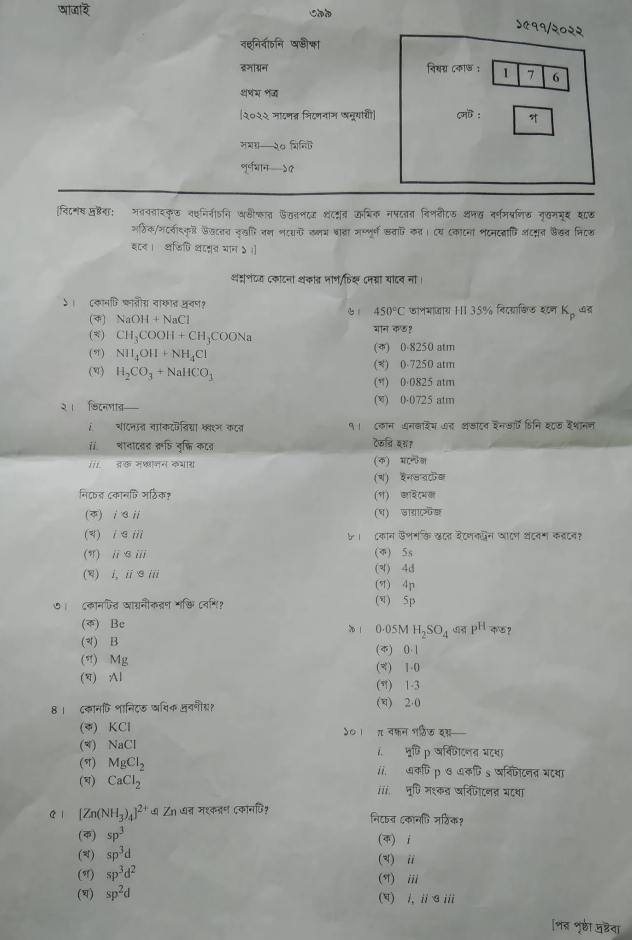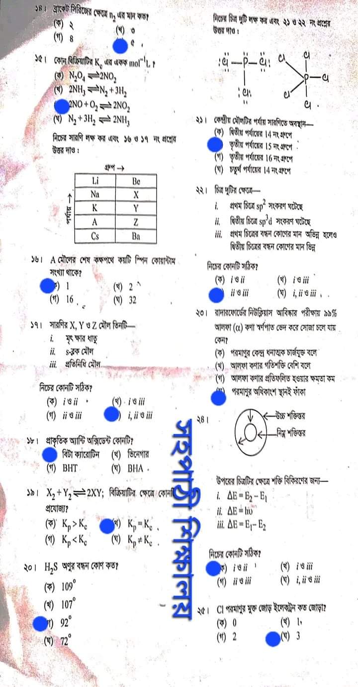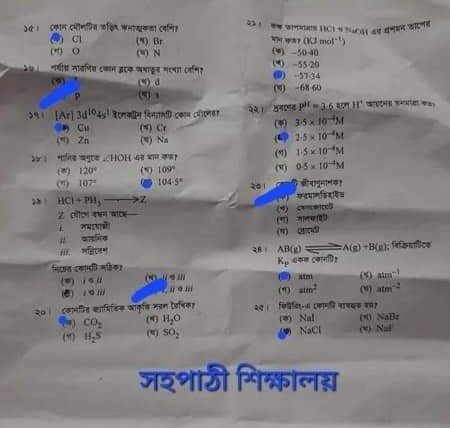 Hsc Chemistry 1st Paper mcq solution 2022