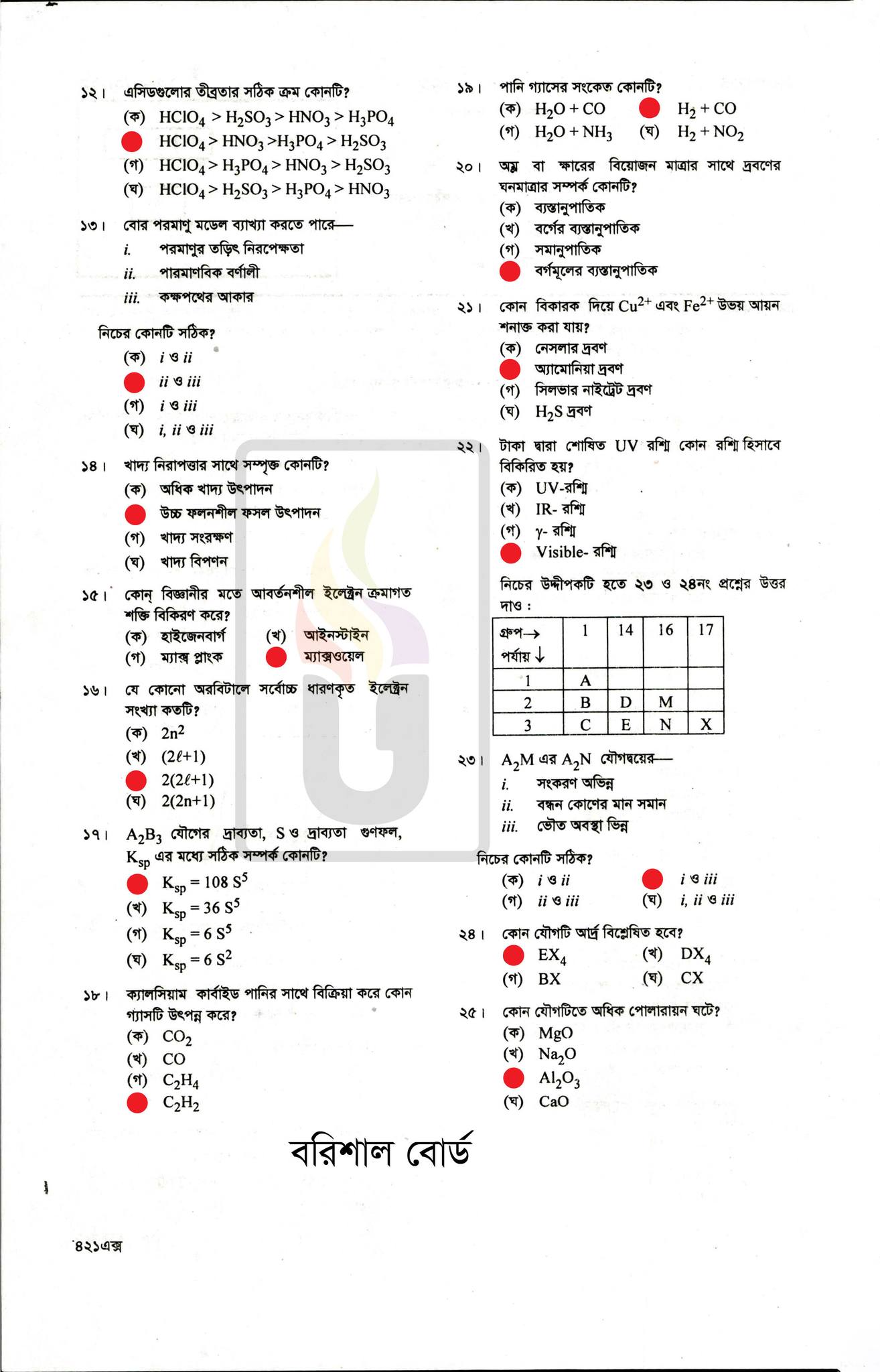 বরিশাল বোর্ড এইচএসসি রসায়ন ১ম পত্র প্রশ্ন সমাধান ২০২২