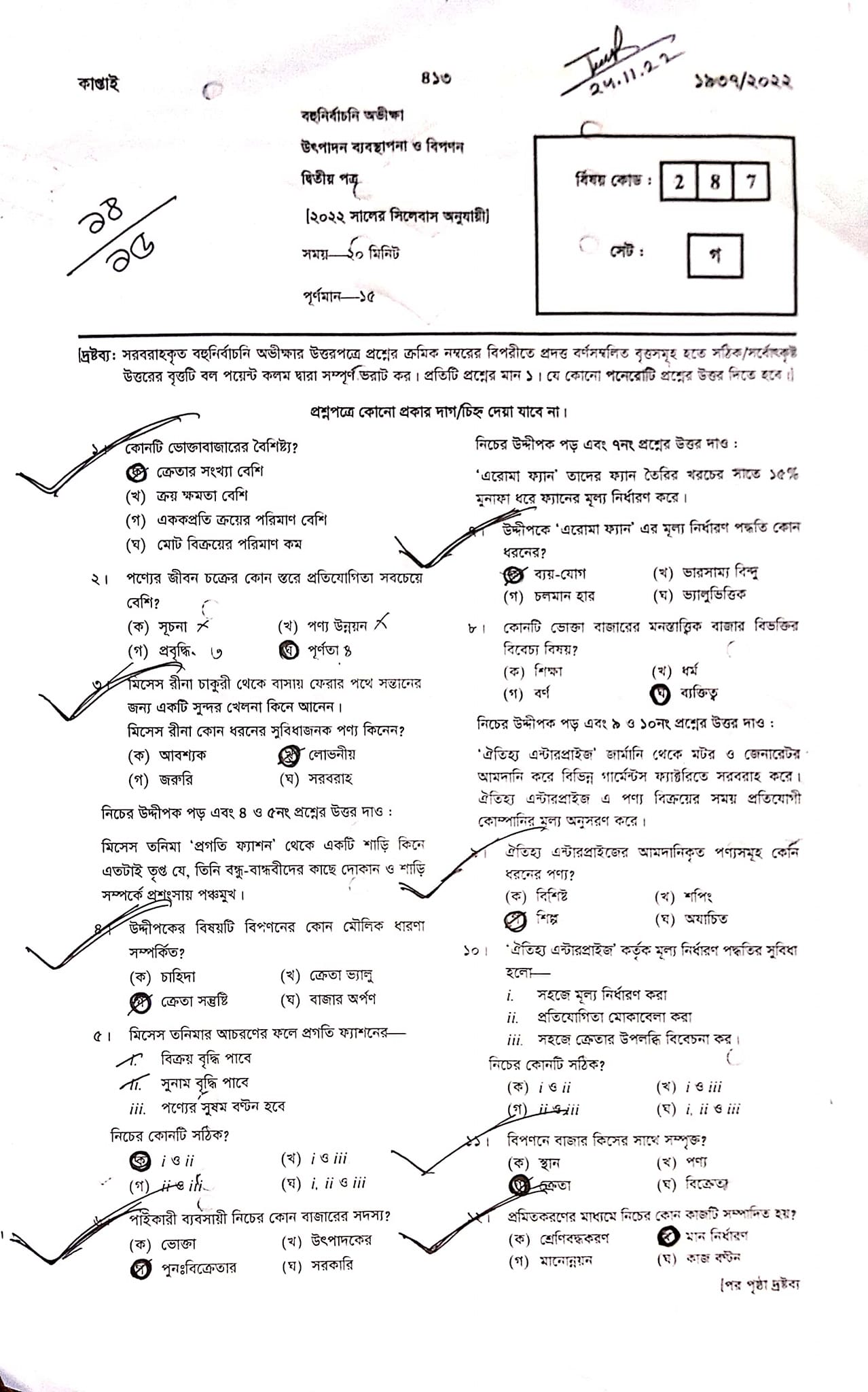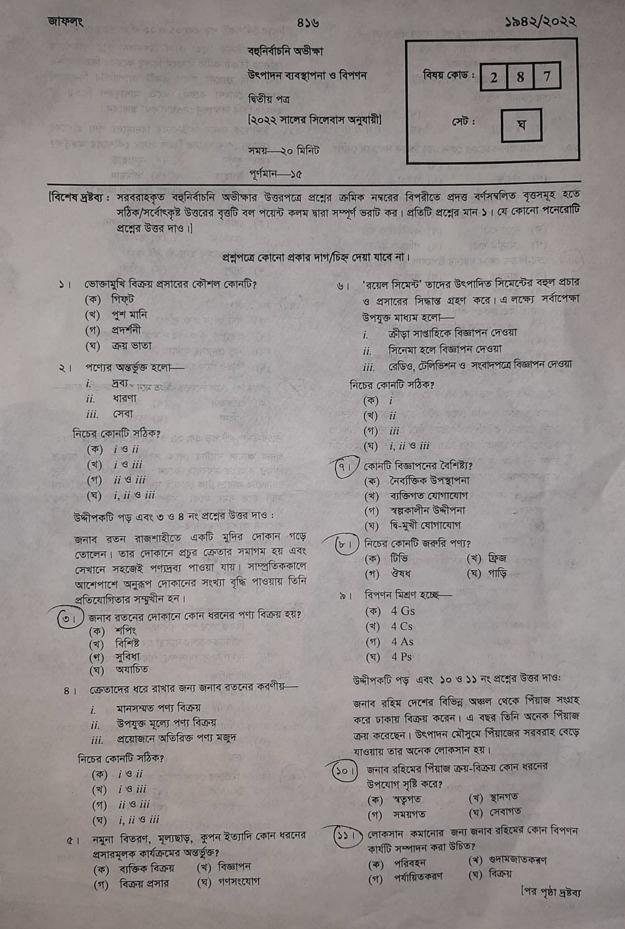 | বিষয়ের নাম | উৎপাদন ব্যবস্থাপনা ও বিপণন ২য় পত্র |
