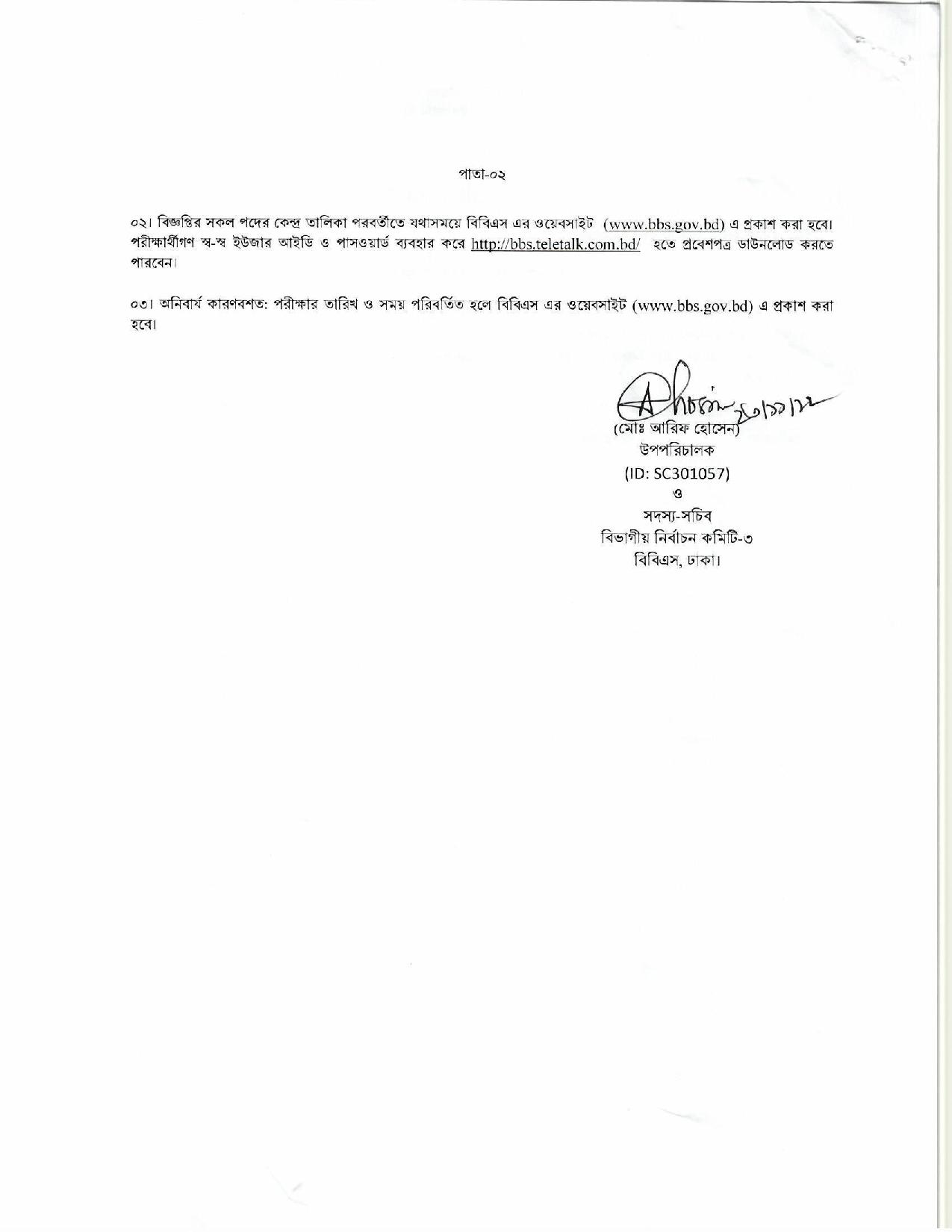 বাংলাদেশ পরিসংখ্যান ব্যুরো পরীক্ষার সময়সূচী ২০২২ – BBS Job Exam Date 2022