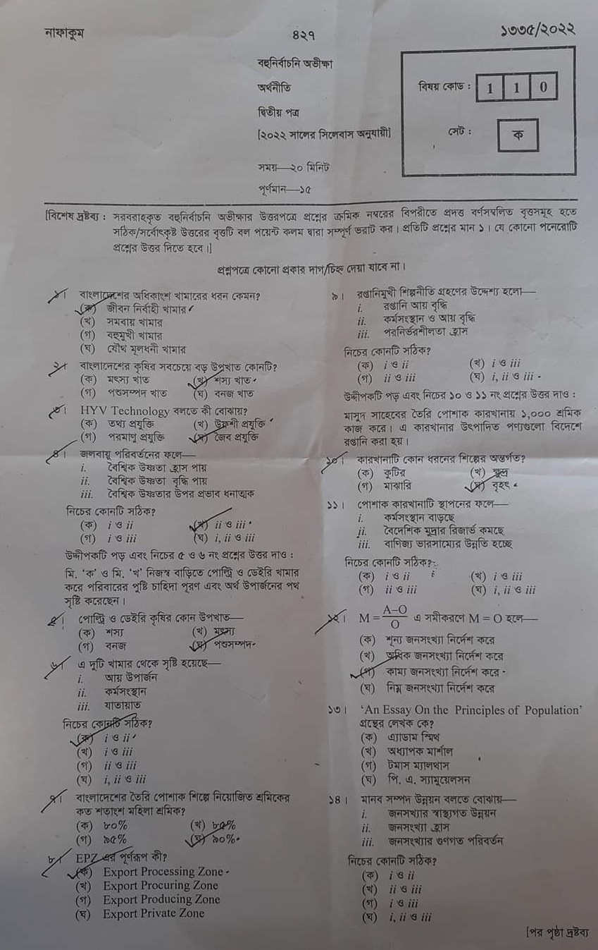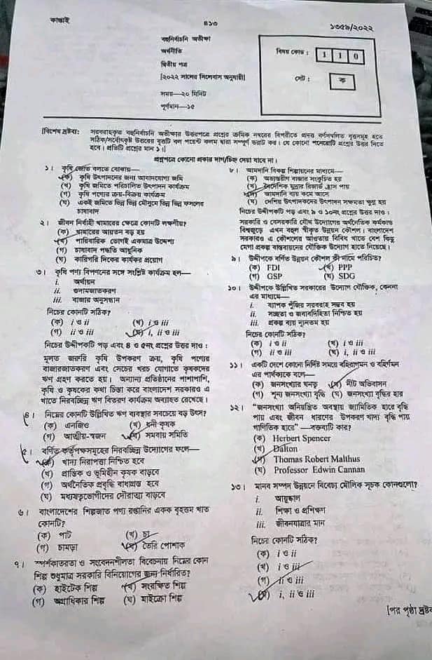 | বিষয়ের নাম | অর্থনীতি ২য় পত্র |