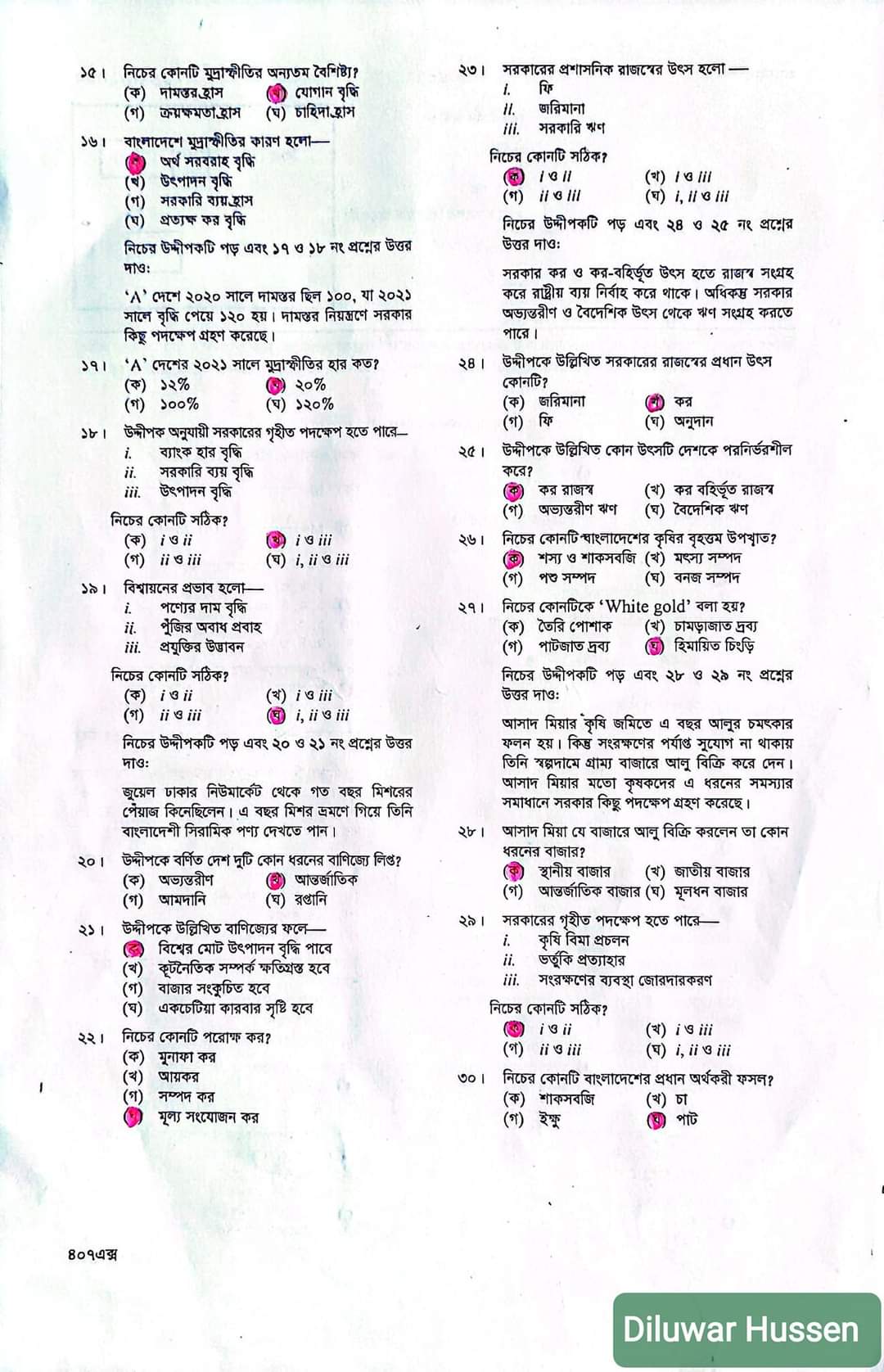 এইচএসসি অর্থনীতি ২য় পত্র পত্র প্রশ্ন সমাধান ২০২২ এমসিকিউ অংশ