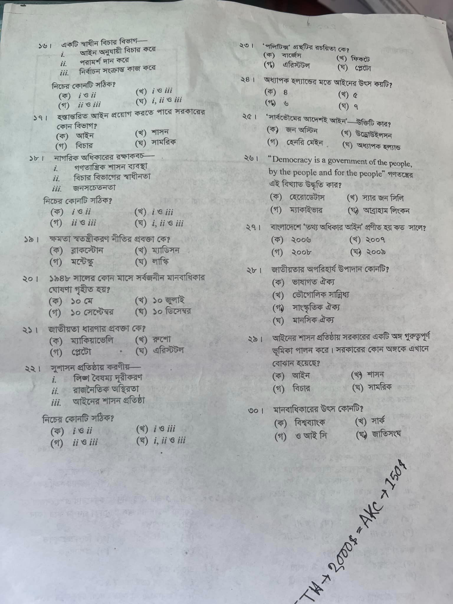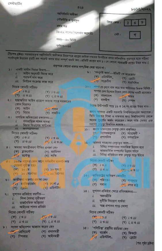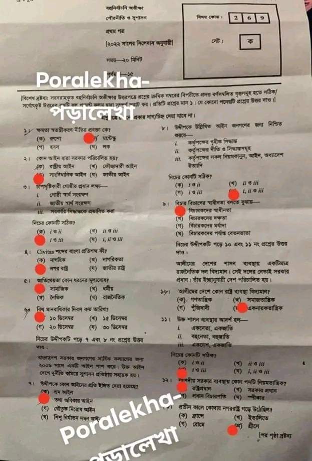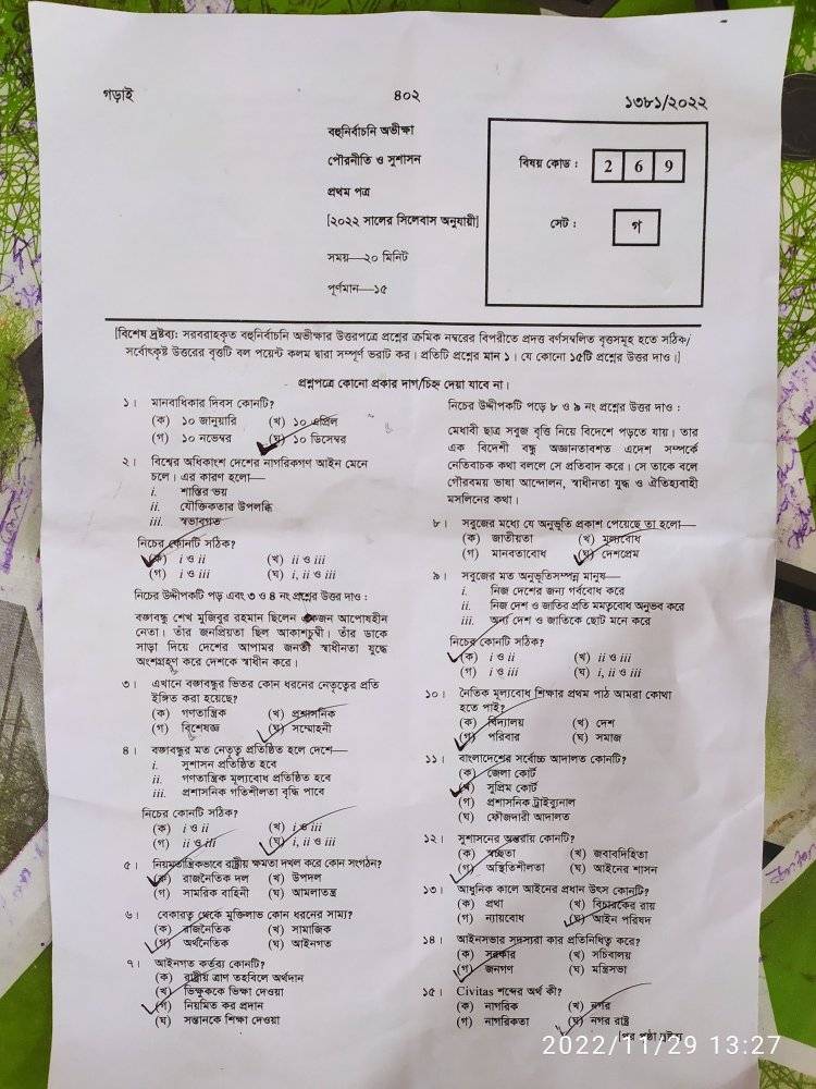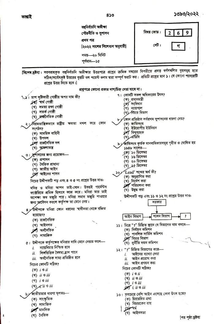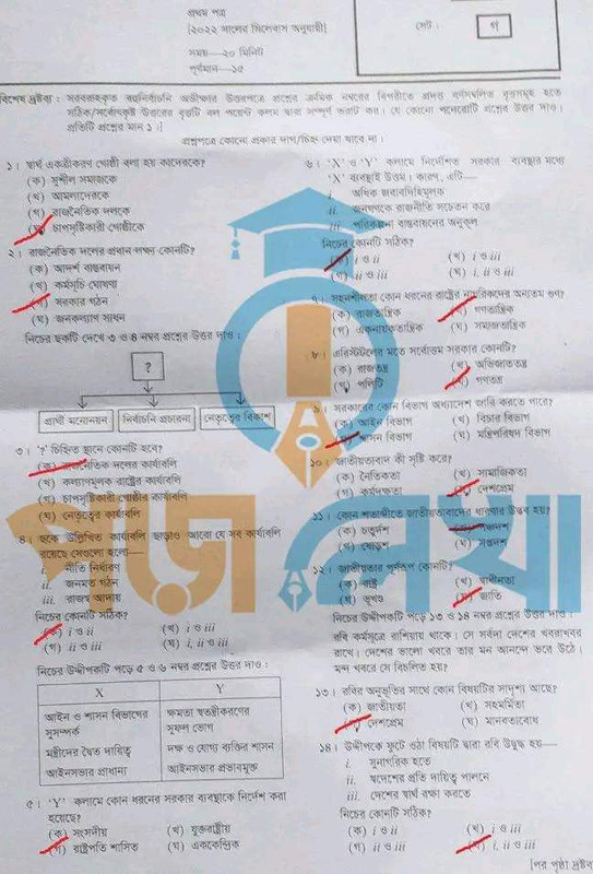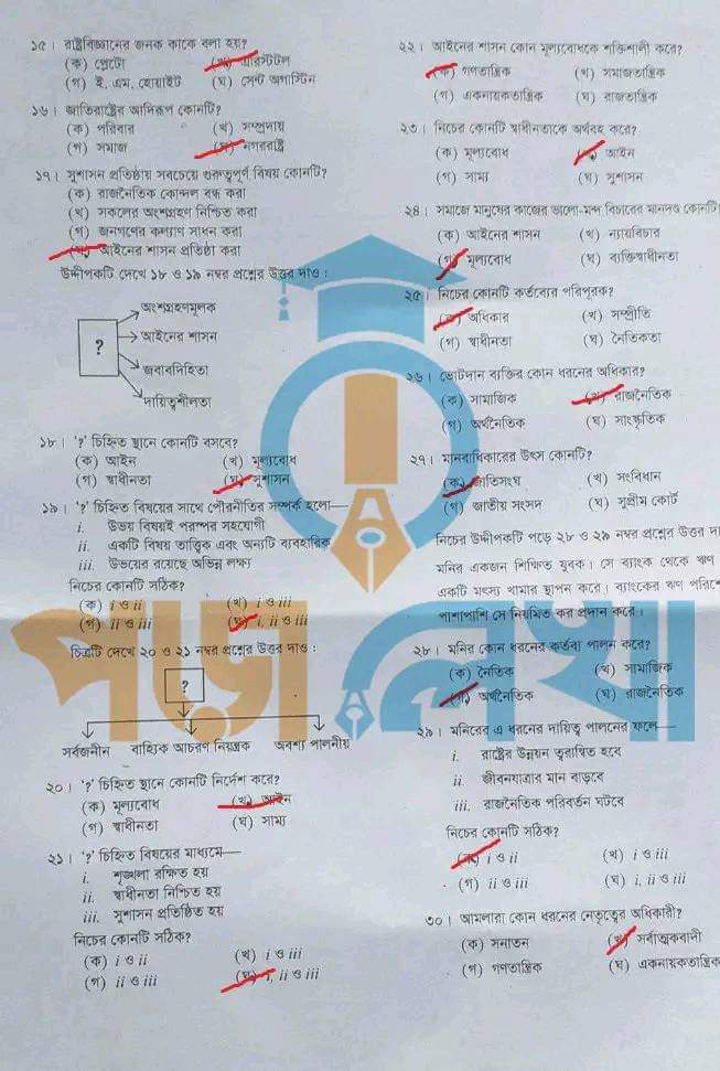 এইচএসসি পৌরনীতি ও সুশাসন ১ম পত্র MCQ প্রশ্ন সমাধান ২০২২
