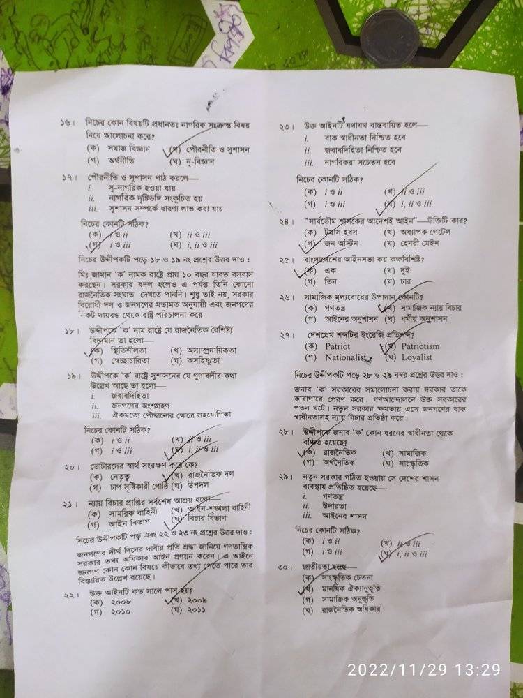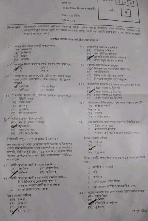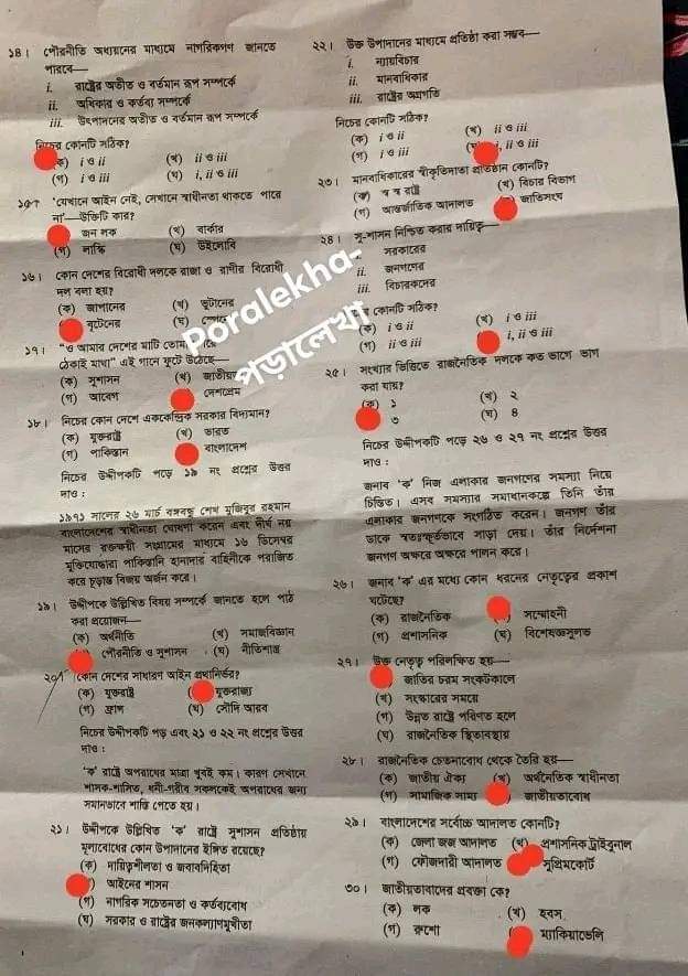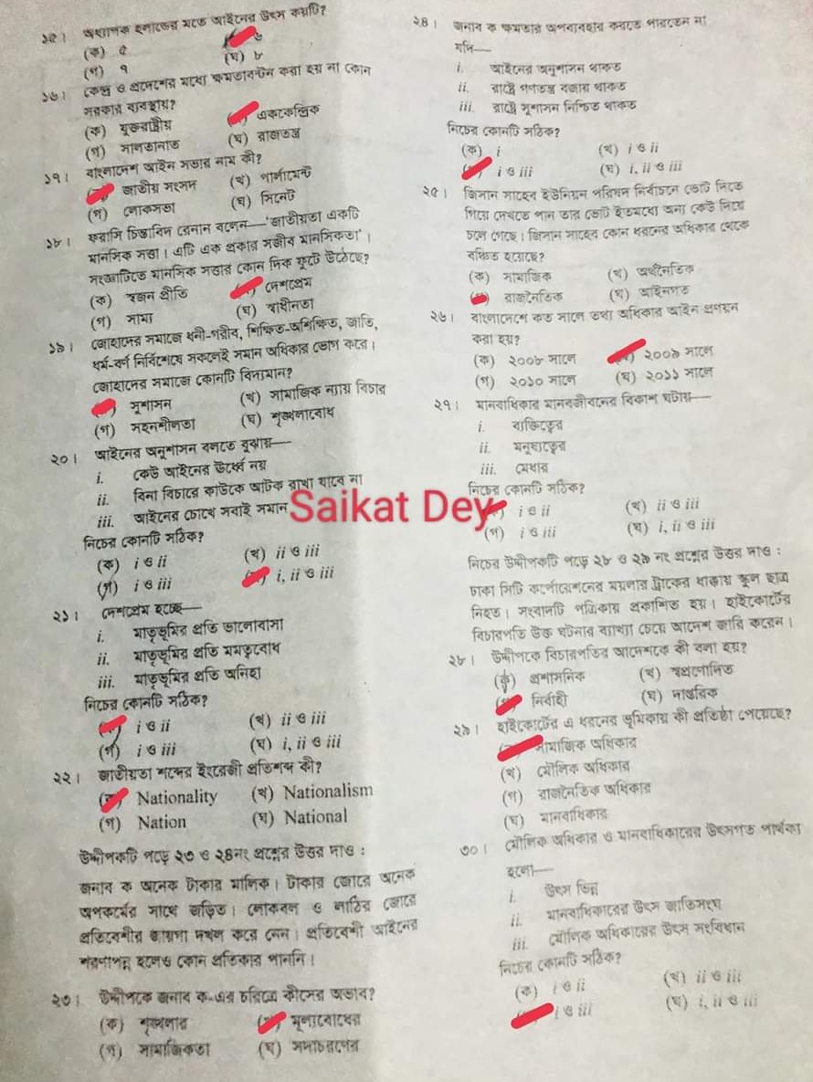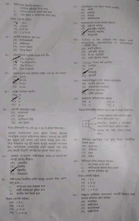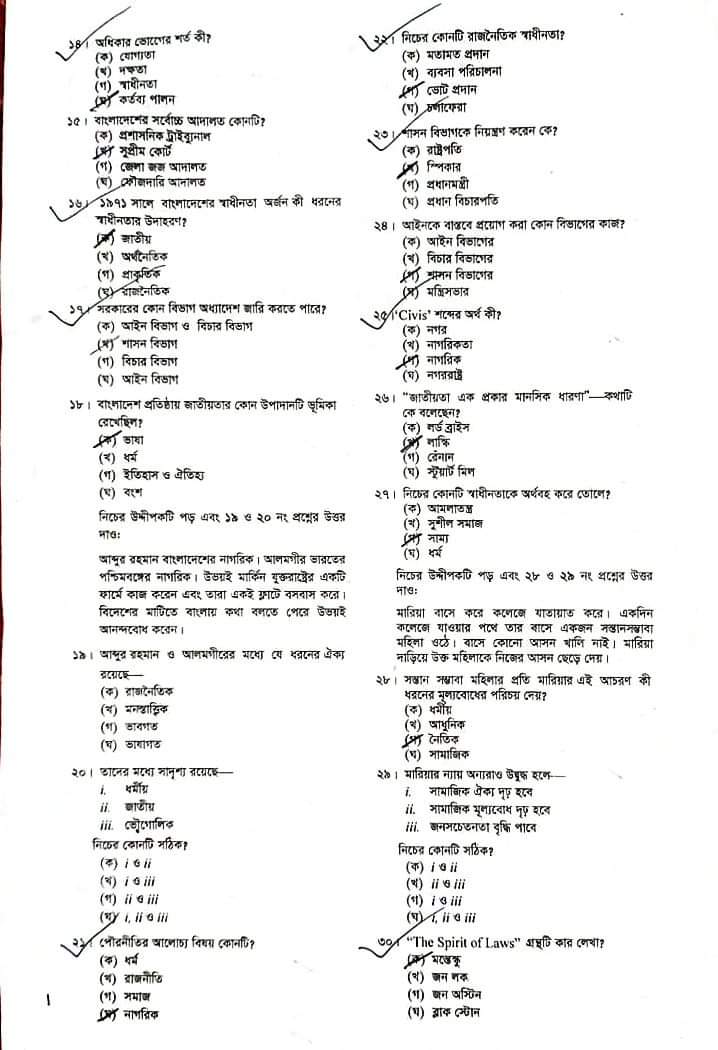 সংশোধনঃ ৮ নম্বরের (গ) পলিটি ও ১১ নম্বরের (গ) ষোড়শ সঠিক উত্তর হবে
