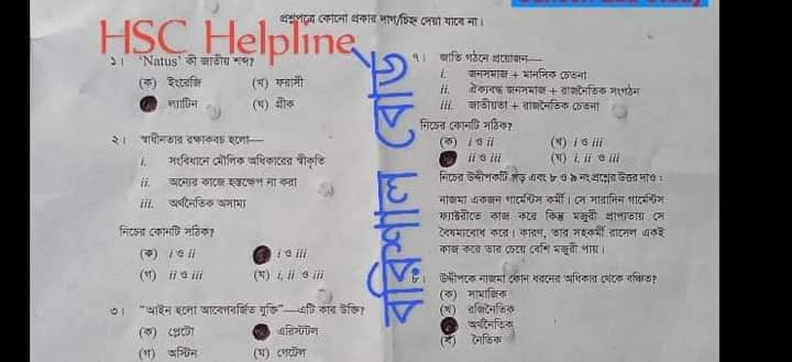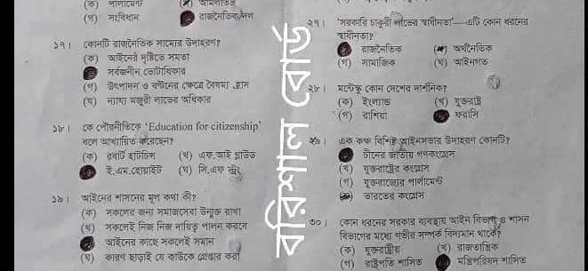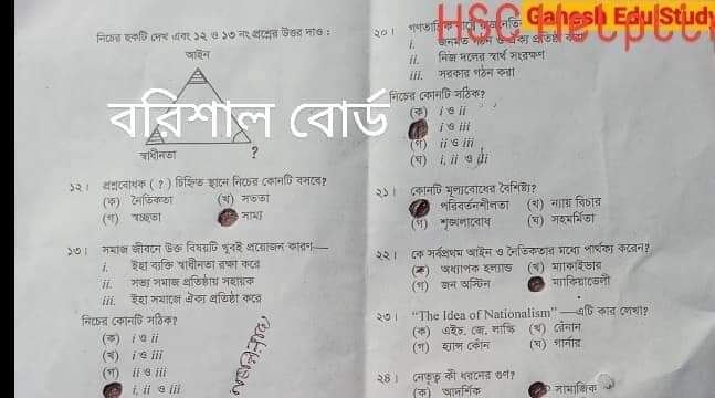 বরিশাল বোর্ড এইচএসসি পৌরনীতি ১ম পত্র প্রশ্ন সমাধান ২০২২