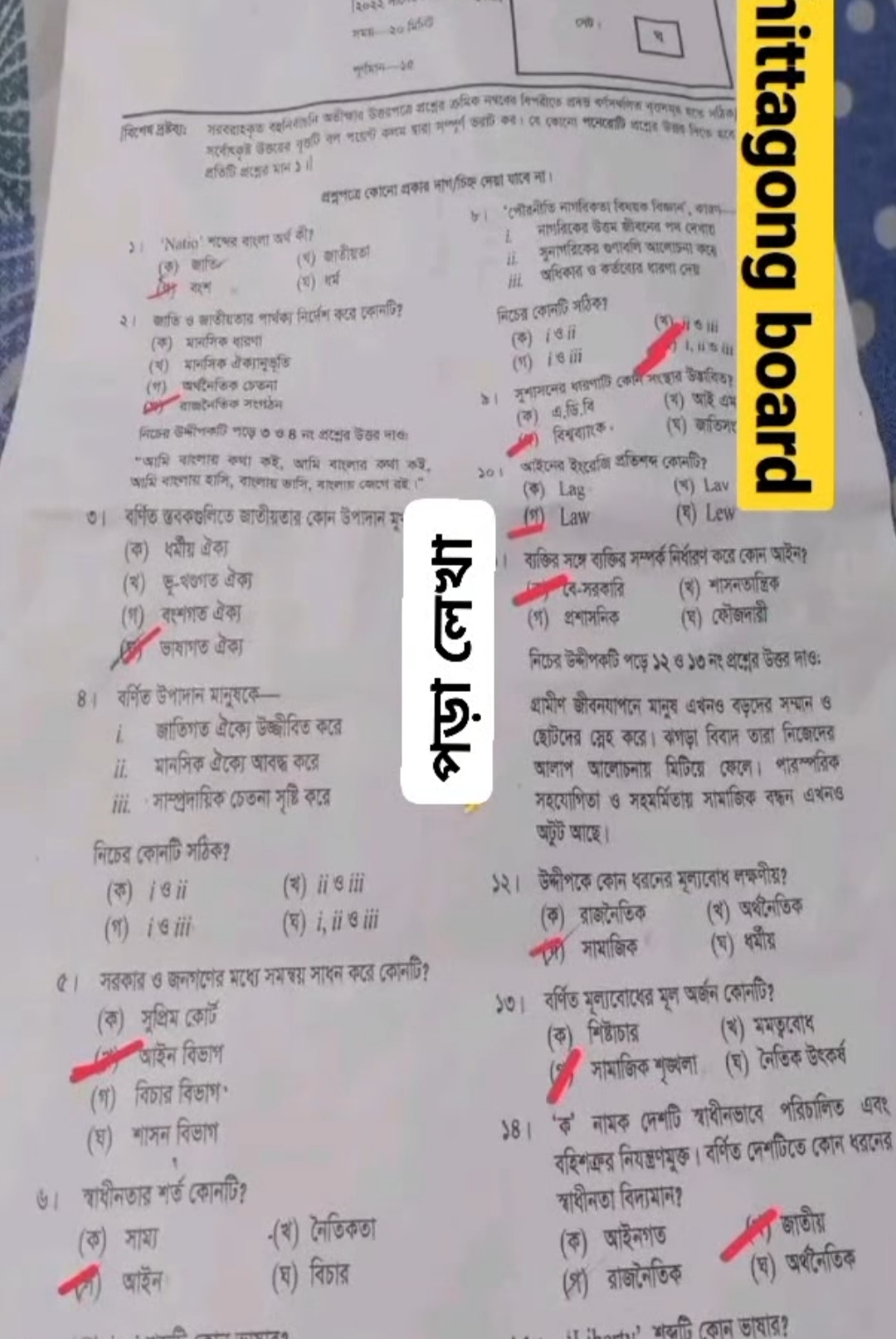 চট্টগ্রাম বোর্ড এইচএসসি পৌরনীতি ও সুশাসন ১ম পত্র প্রশ্ন সমাধান ২০২২