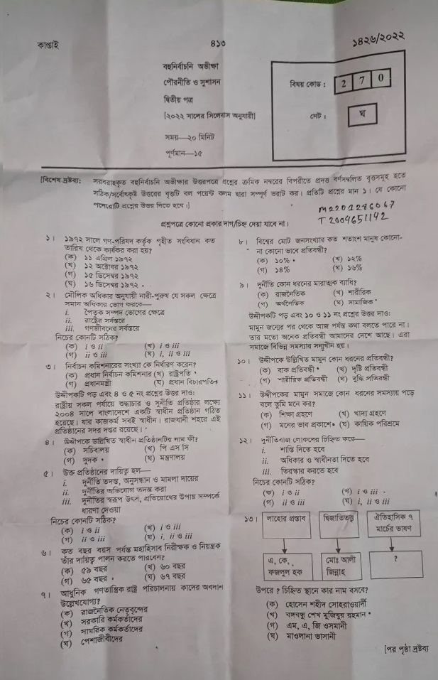 | বিষয়ের নাম | পৌরনীতি ও সুশাসন ২য় পত্র |