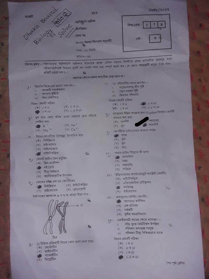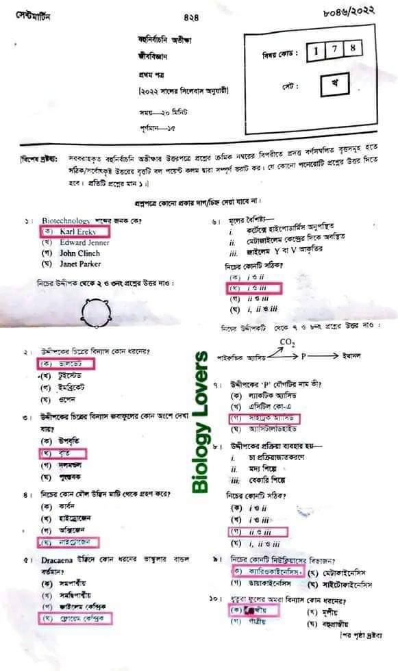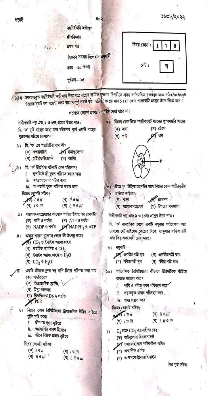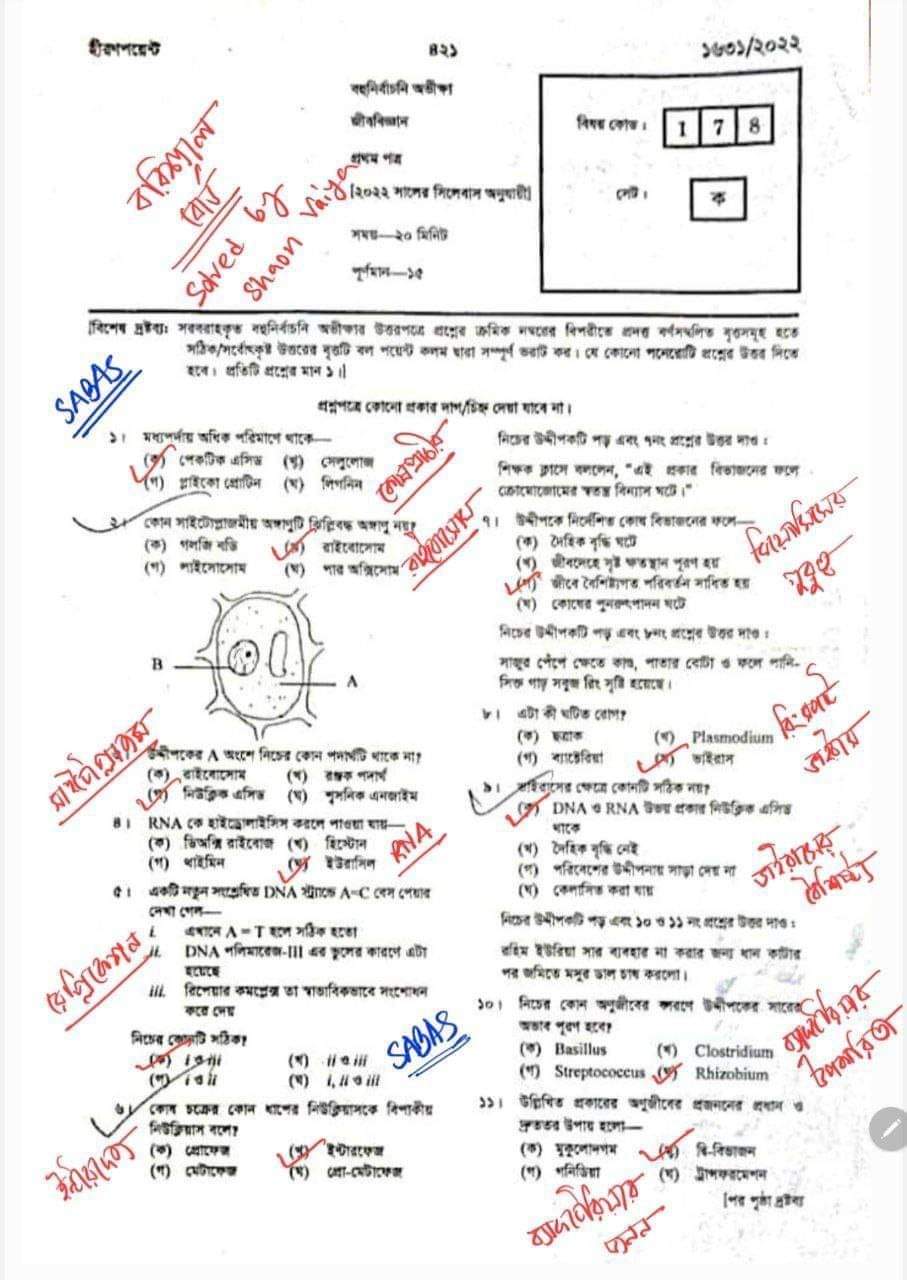 এইচএসসি জীববিজ্ঞান ১ম পত্র পত্র প্রশ্ন সমাধান ২০২২ এমসিকিউ অংশ