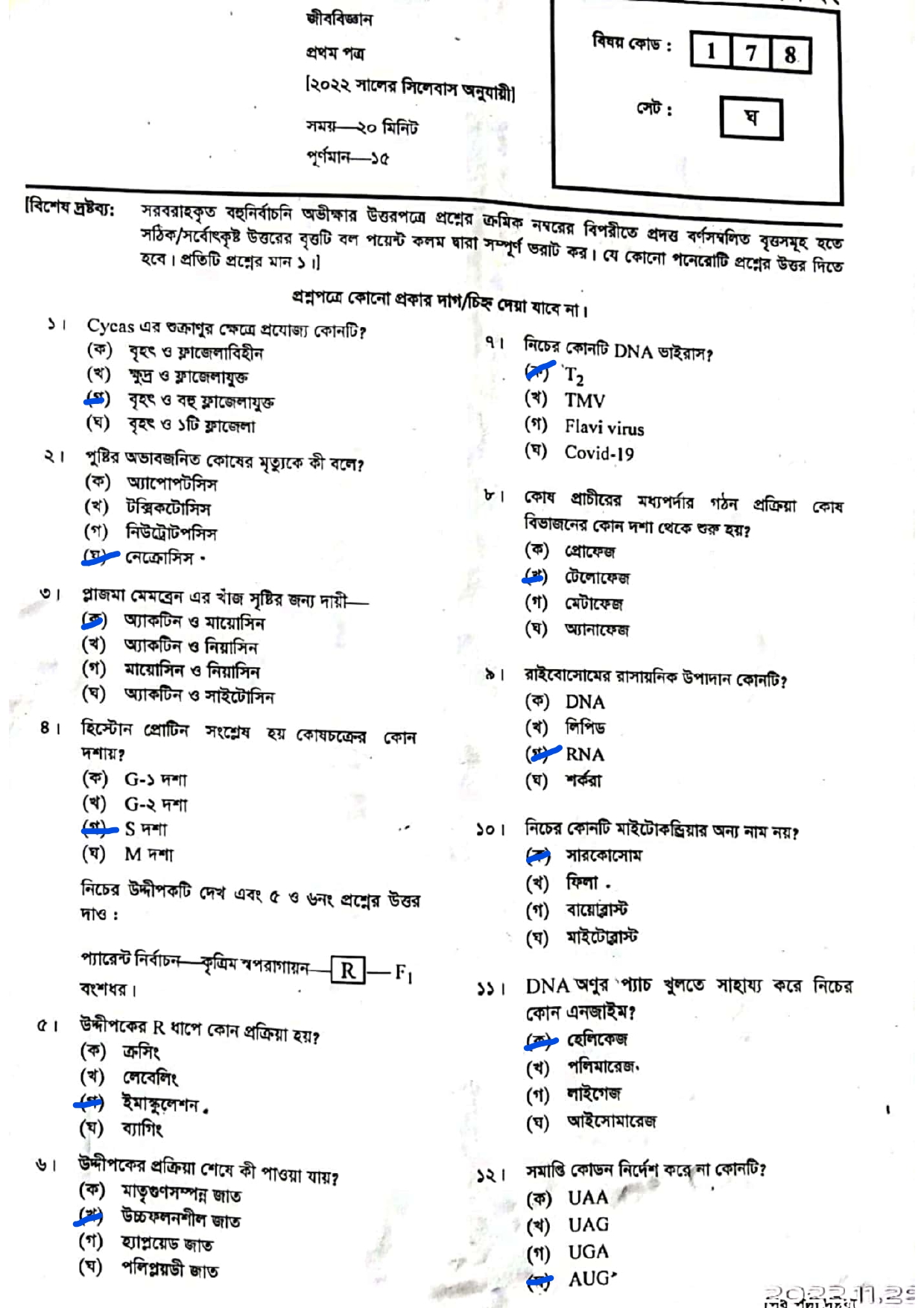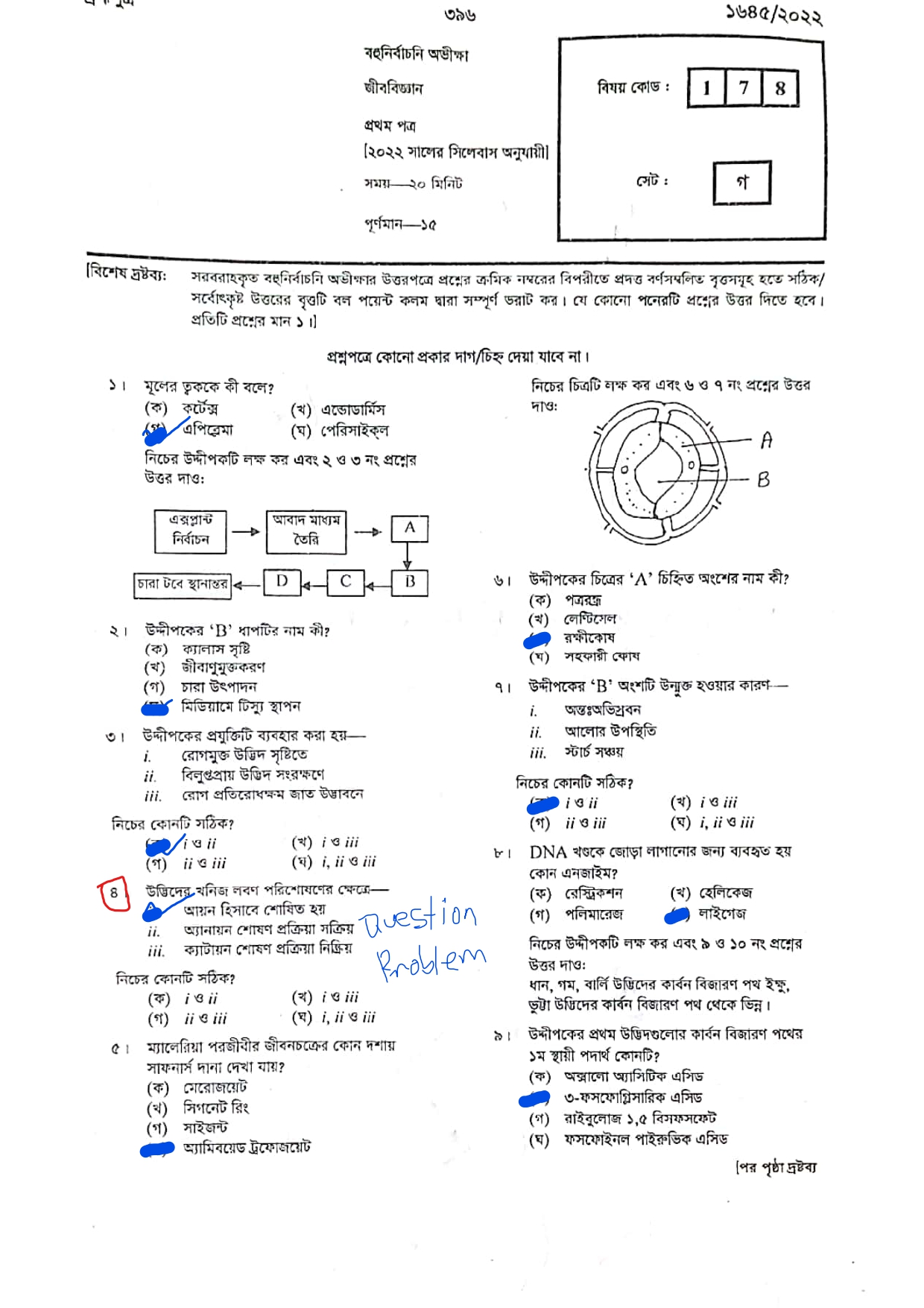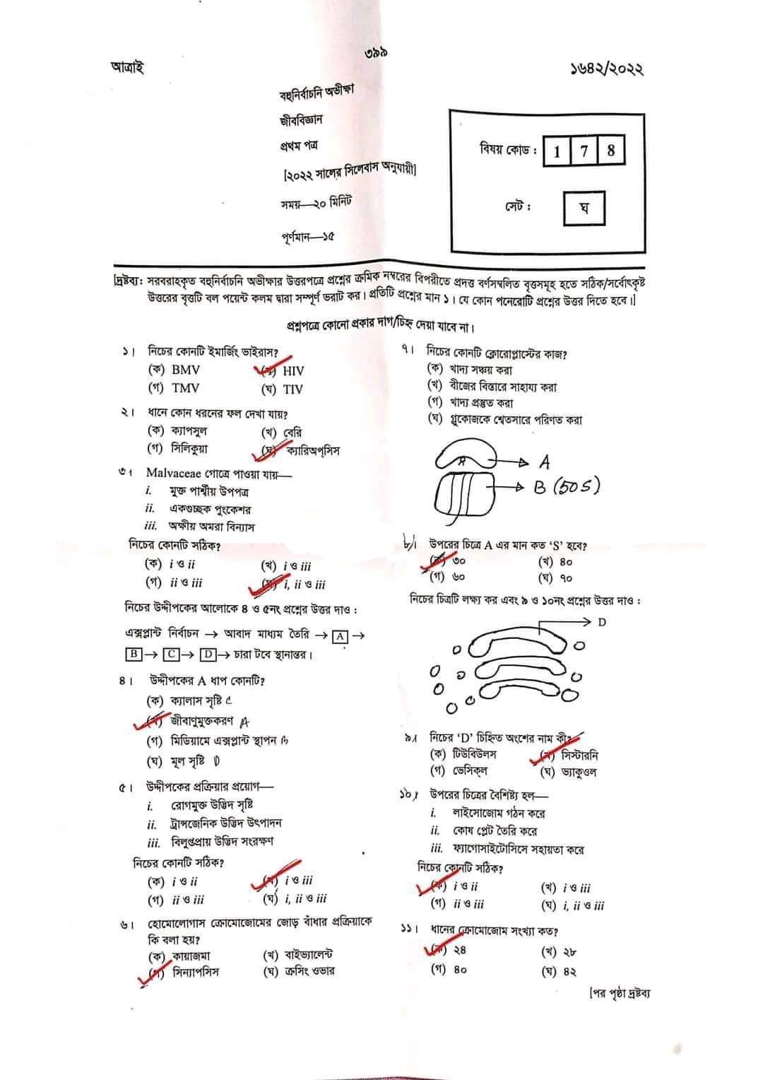 এইচএসসি জীববিজ্ঞান ১ম পত্র পত্র প্রশ্ন সমাধান ২০২২ এমসিকিউ অংশ