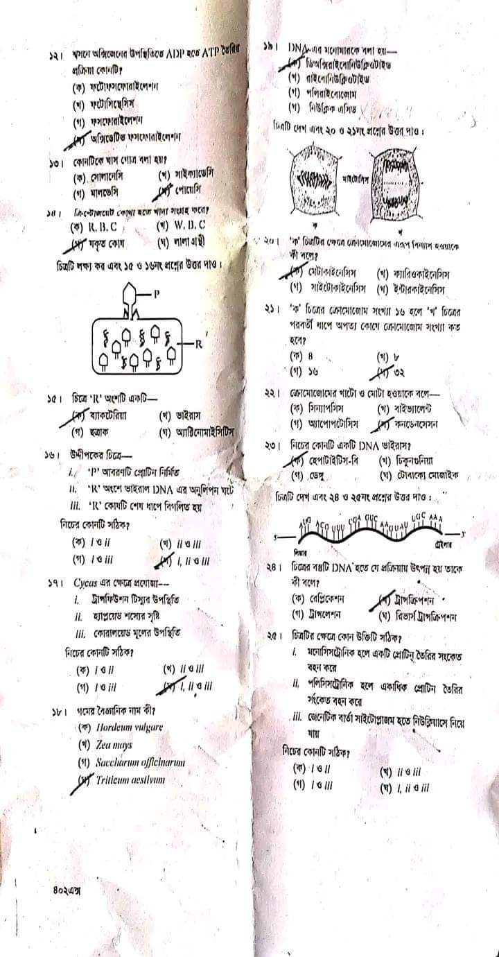 | বিষয়ের নাম | জীববিজ্ঞান ১ম পত্র |