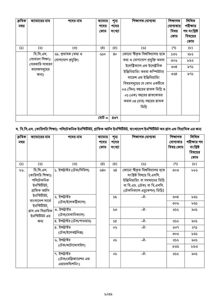 | নিয়োগদাতা প্রতিষ্ঠান | বাংলাদেশ সরকারি কর্ম কমিশন (পিএসসি) |