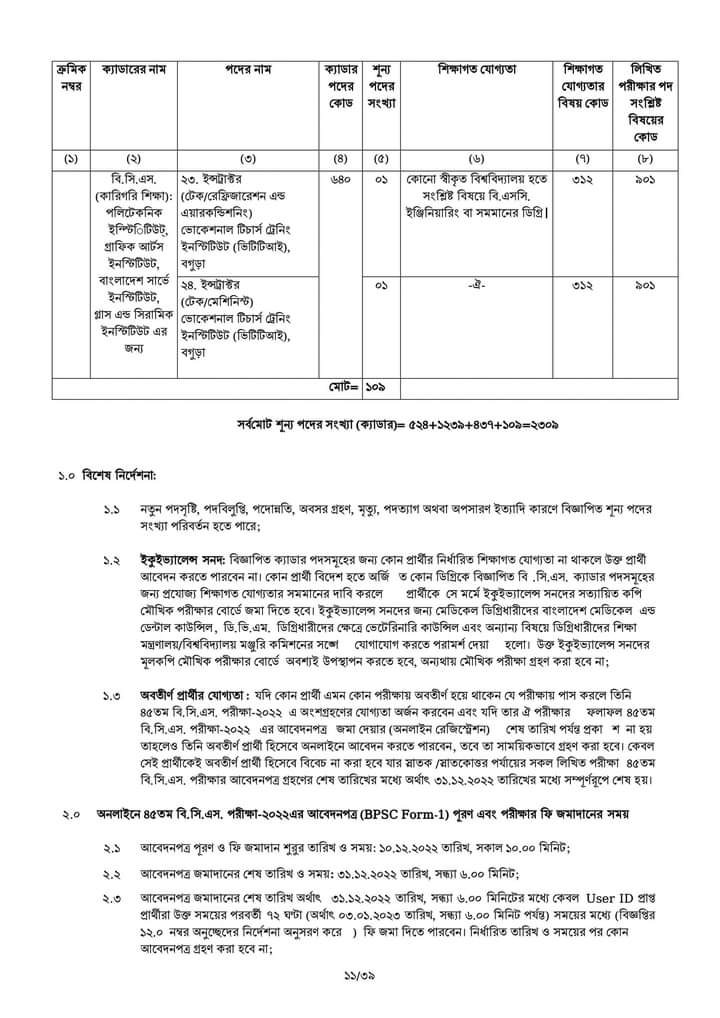| ৪৫ তম বিসিএস ক্যাডার পদ সংখ্যা | ২৩০৯ |