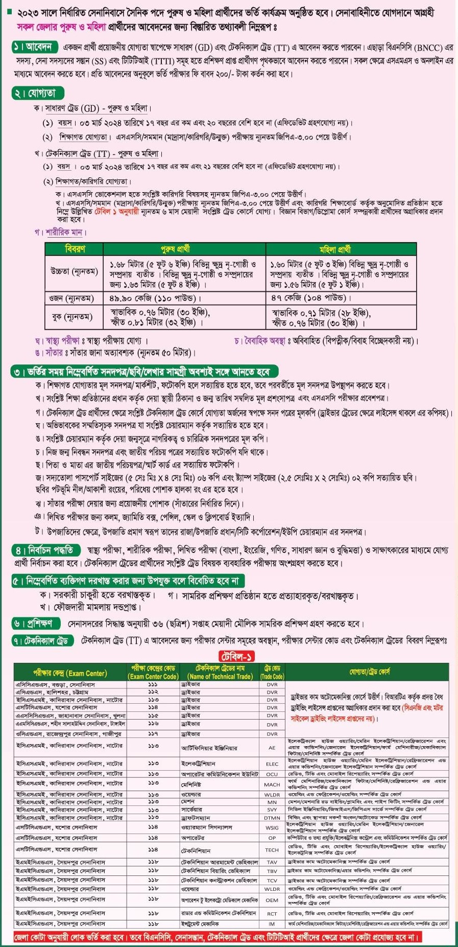 বাংলাদেশ সেনাবাহিনীতে সৈনিক (GD & TT) পদে আবেদন করার শারীরিক যোগ্যতা: