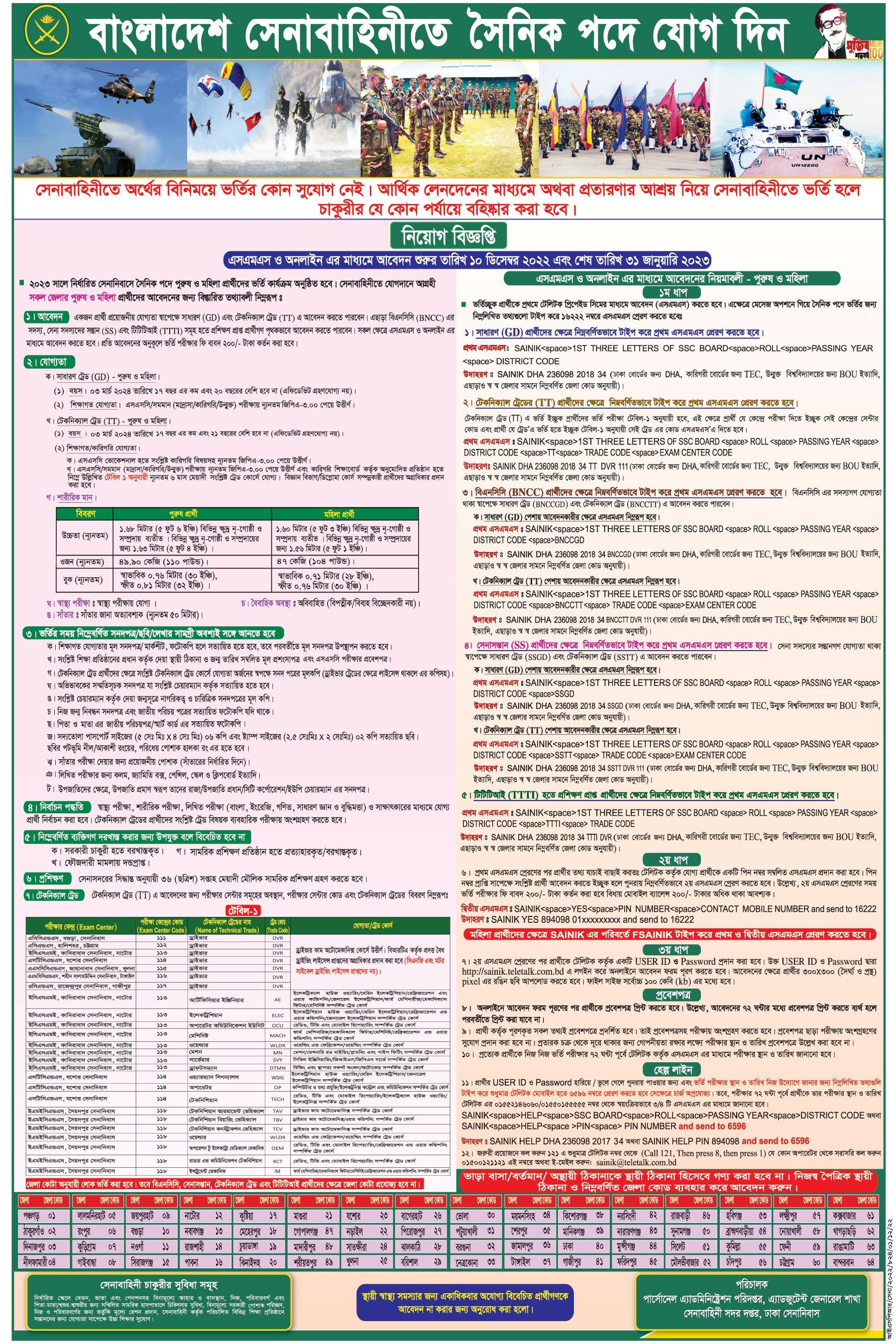 সেনাবাহিনী নিয়োগ ২০২২ / সৈনিক নিয়োগ সার্কুলার ২০২৩