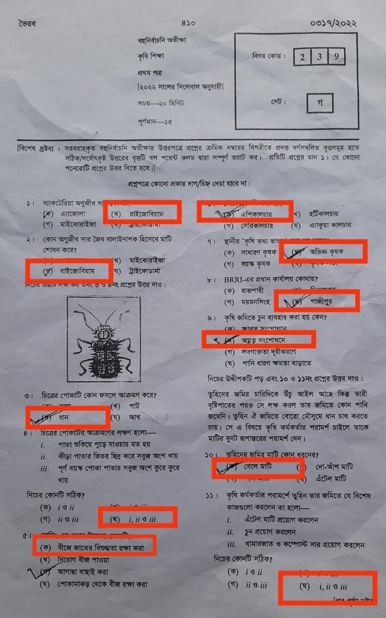 HSC প্রশ্ন সমাধান 2022: কৃষিশিক্ষা ১ম পত্র