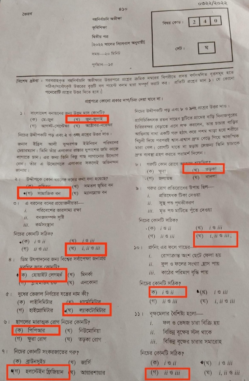 এইচএসসি কৃষিশিক্ষা ২য় পত্র পত্র প্রশ্ন সমাধান ২০২২ এমসিকিউ অংশ