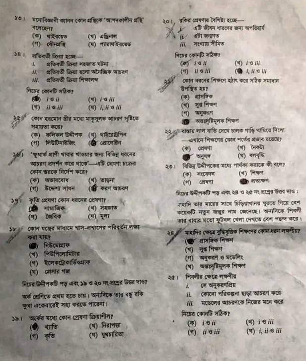 | বিষয়ের নাম | মনোবিজ্ঞান ১ম পত্র |