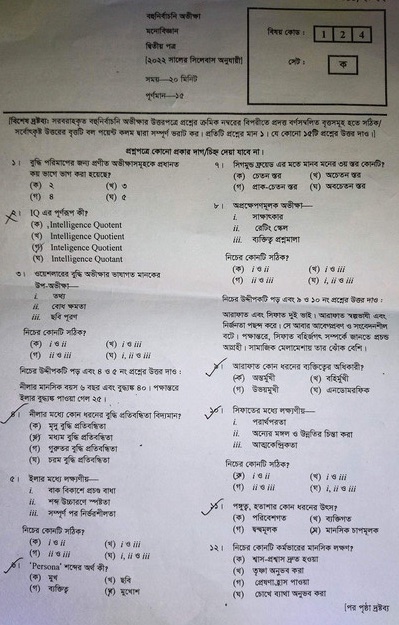 | বিষয়ের নাম | মনোবিজ্ঞান ২য় পত্র |