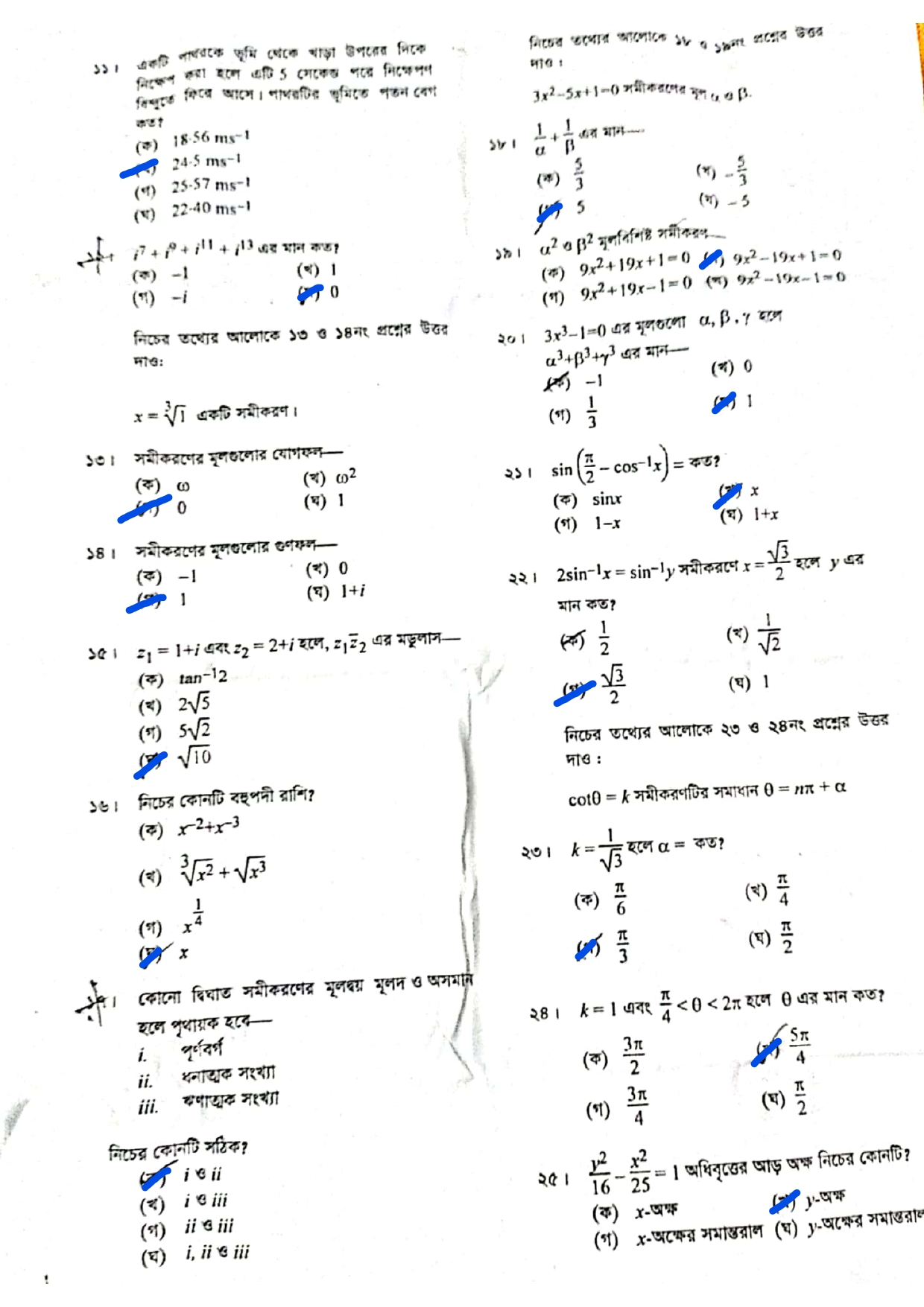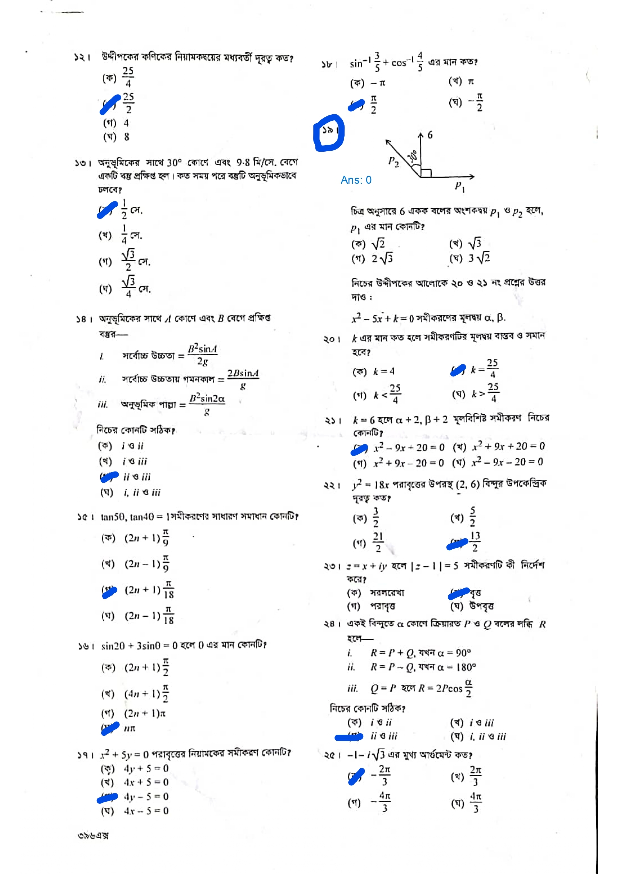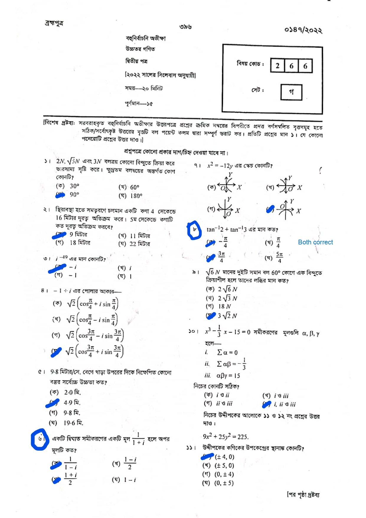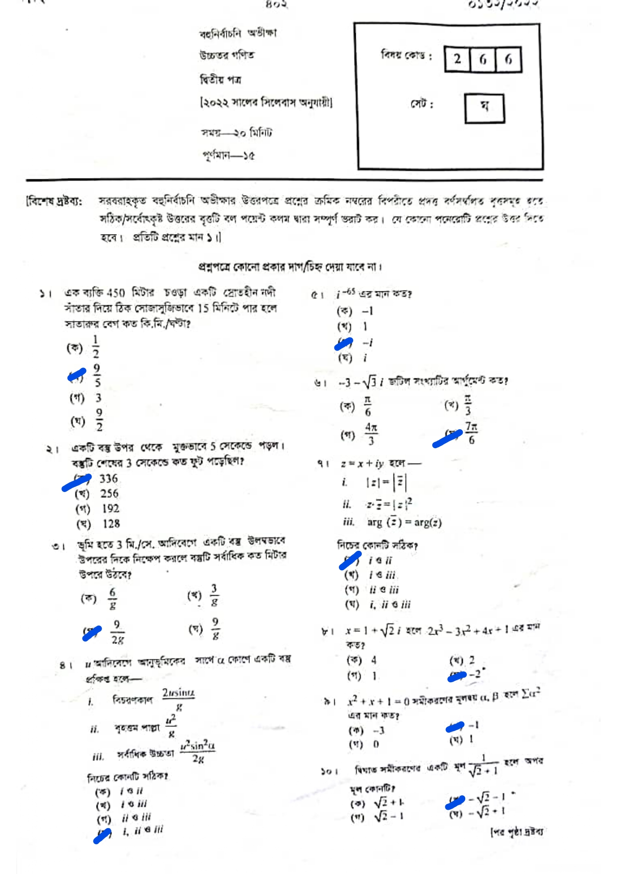 এইচএসসি উচ্চতর গণিত ২য় পত্র পত্র প্রশ্ন সমাধান ২০২২ এমসিকিউ অংশ