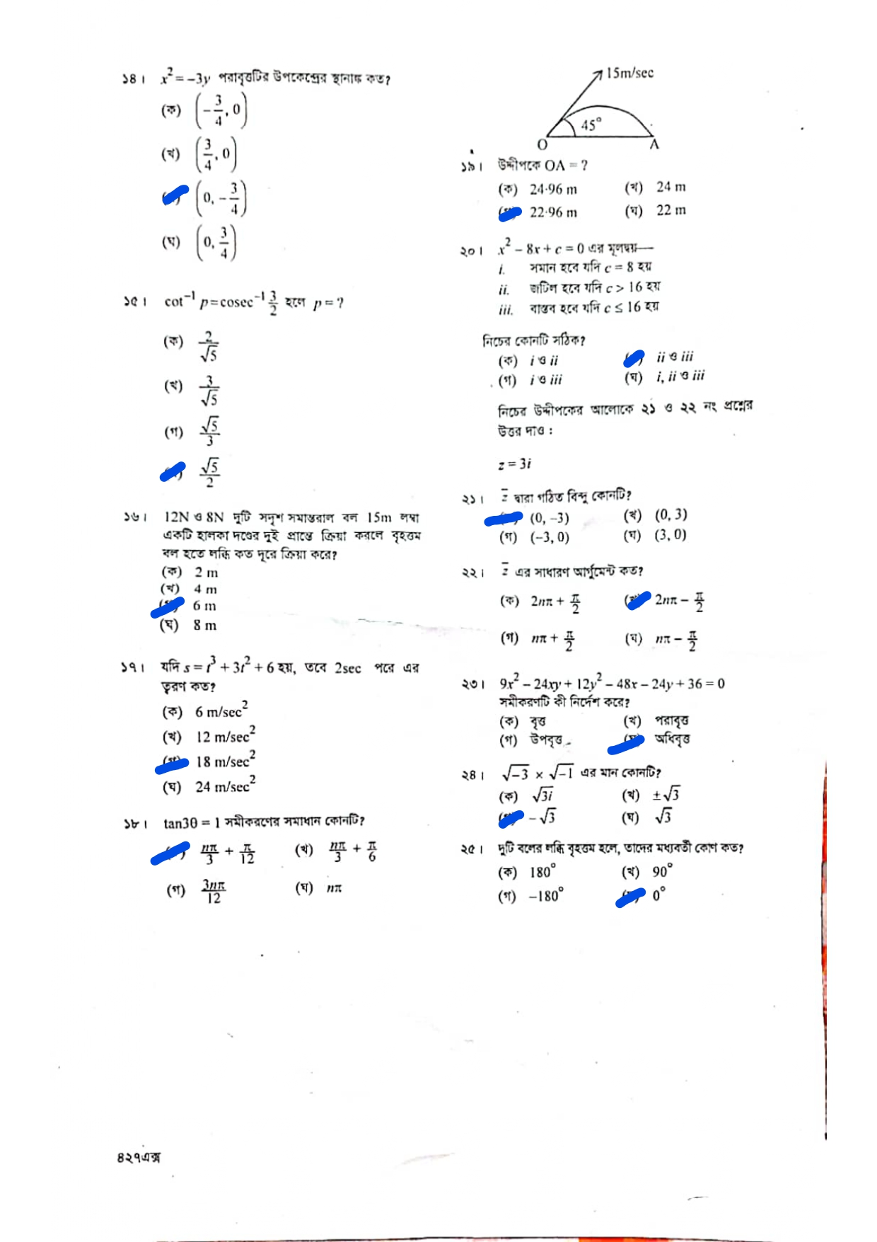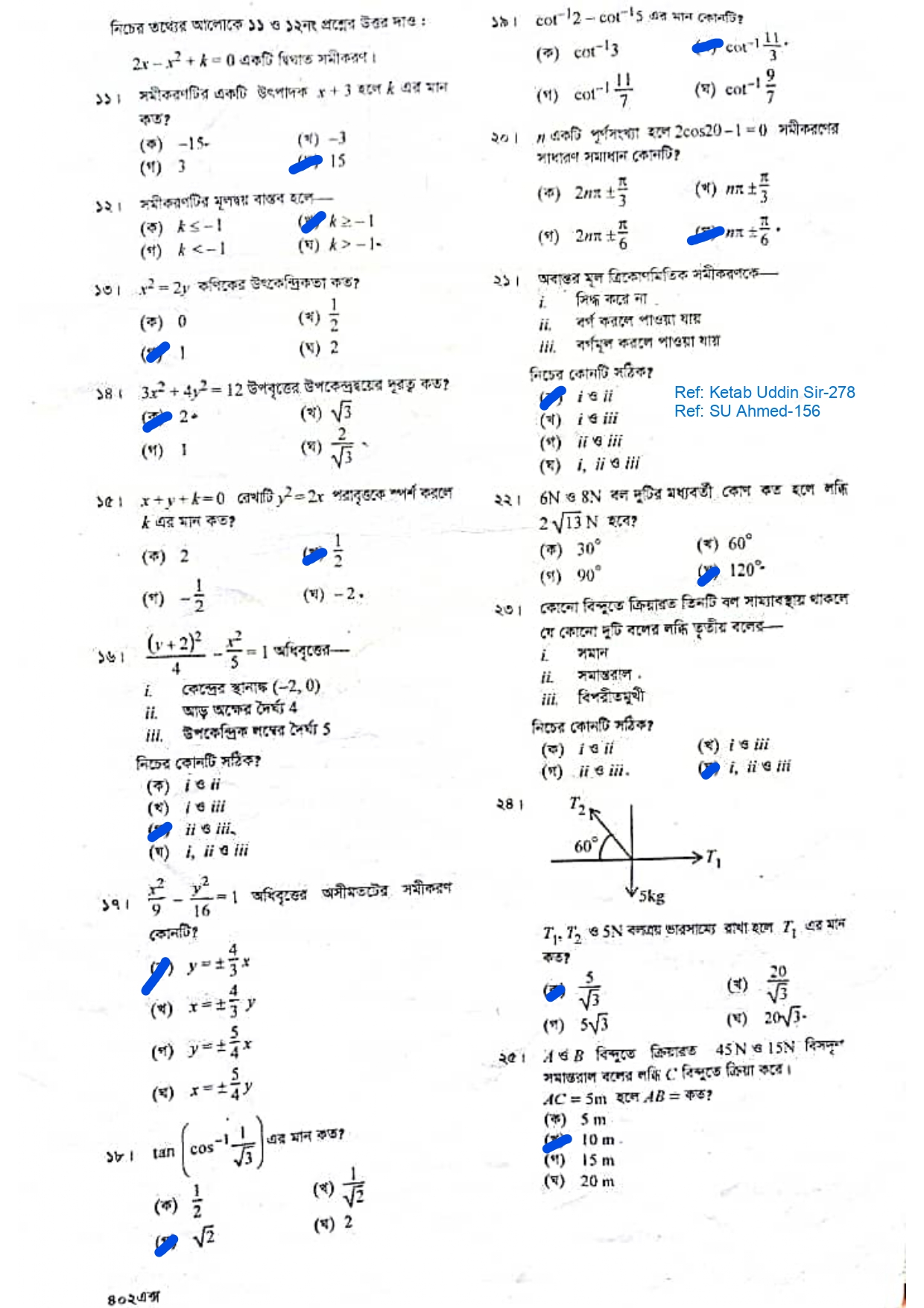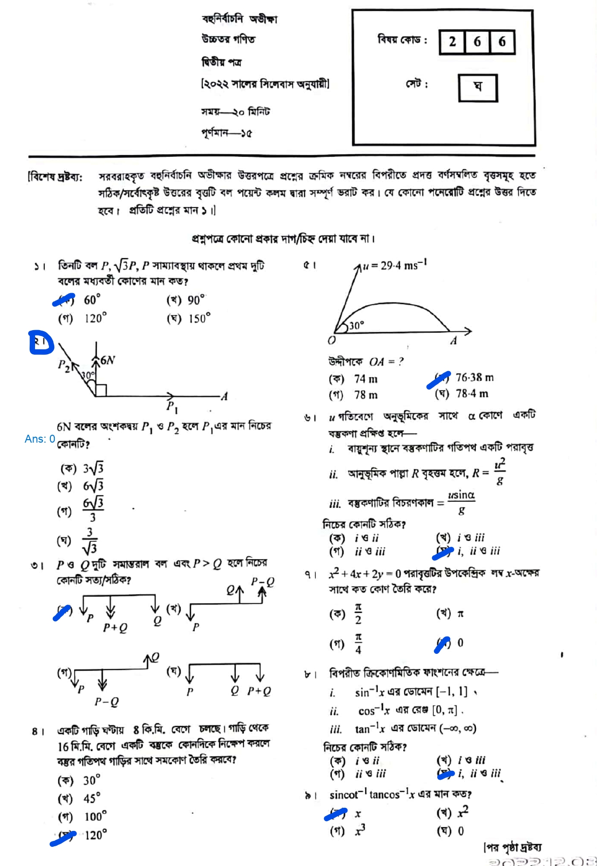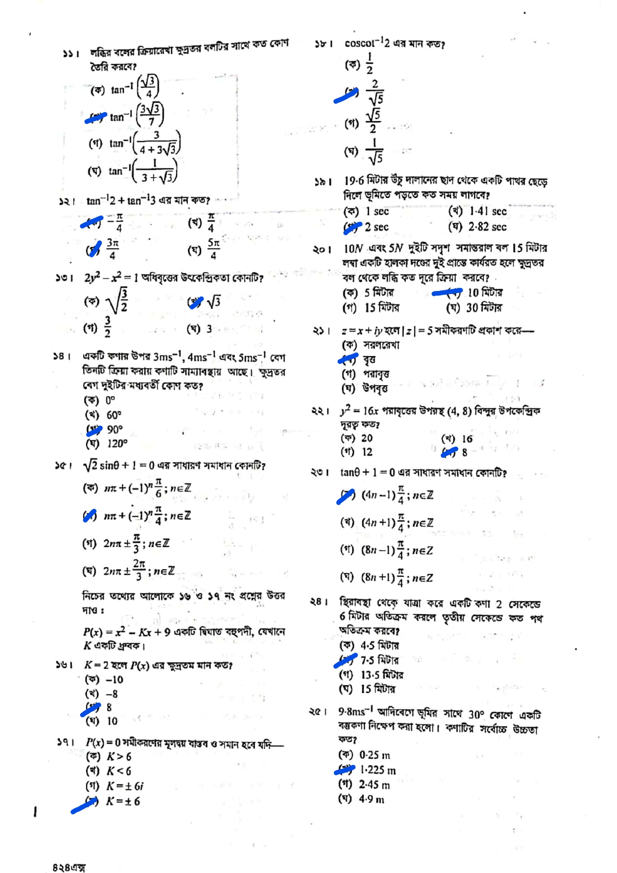 এইচএসসি উচ্চতর গণিত ২য় পত্র পত্র প্রশ্ন সমাধান ২০২২ এমসিকিউ অংশ
