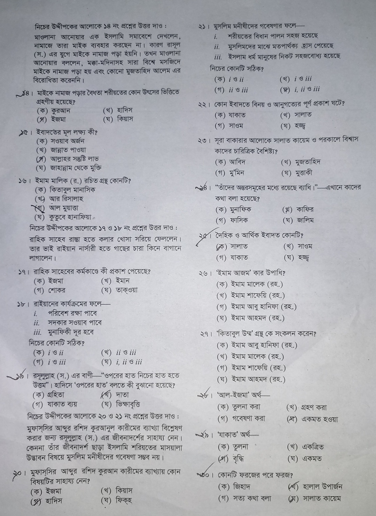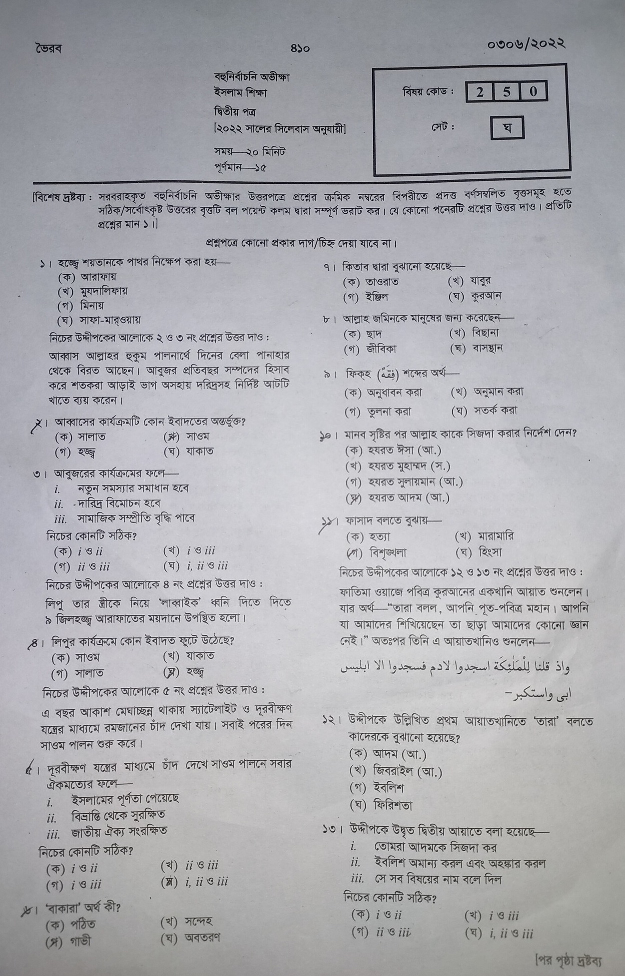 এইচএসসি ইসলাম শিক্ষা ২য় পত্র MCQ প্রশ্ন সমাধান ২০২২