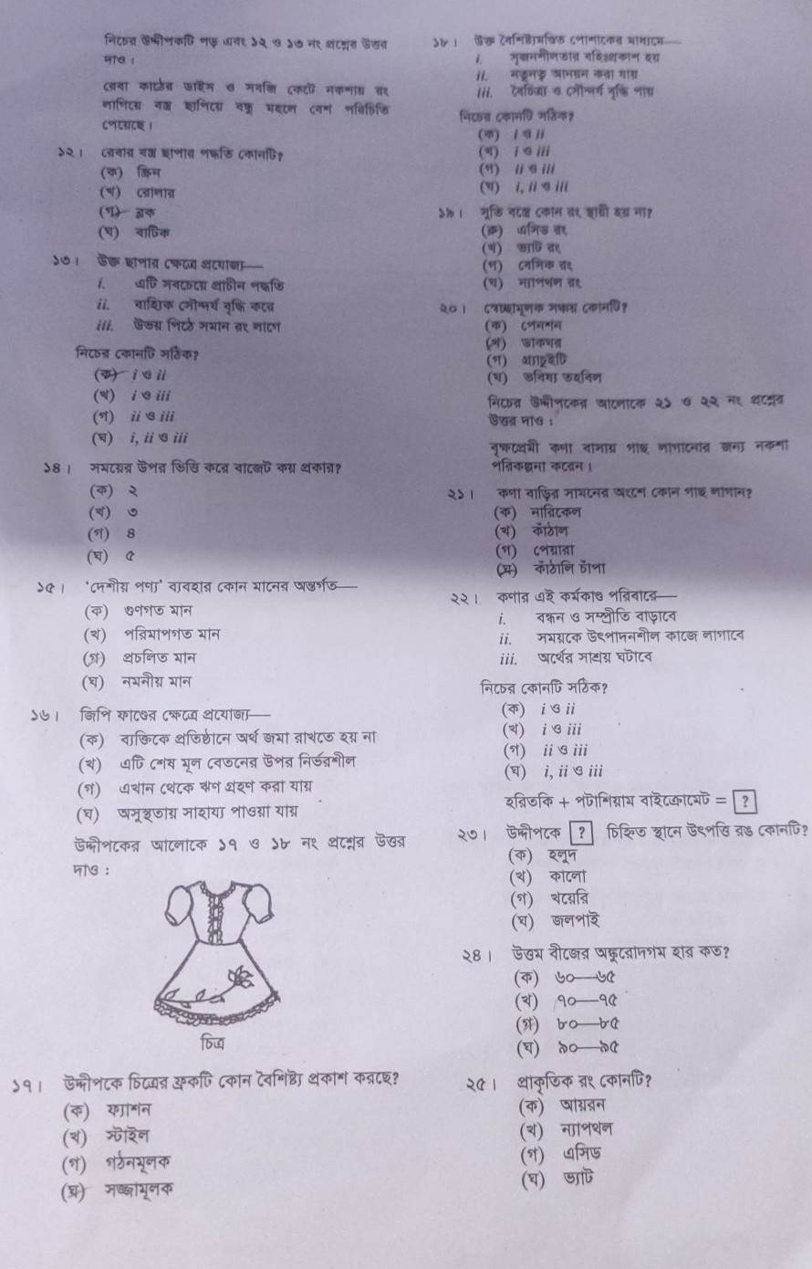 | বিষয়ের নাম | গার্হস্থ্য বিজ্ঞান ১ম পত্র |