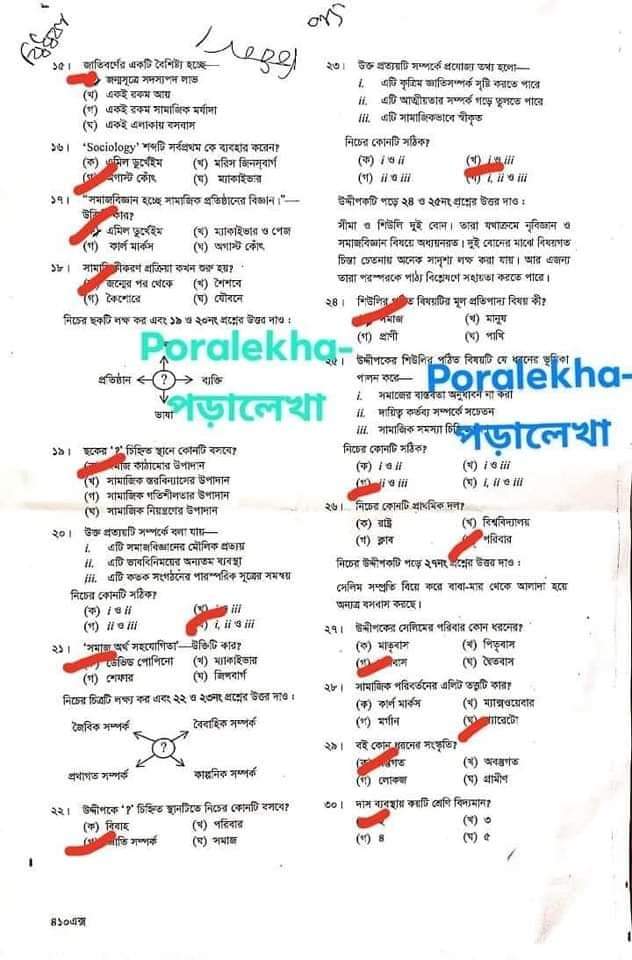 এইচএসসি সমাজবিজ্ঞান ১ম পত্র MCQ প্রশ্ন সমাধান ২০২২