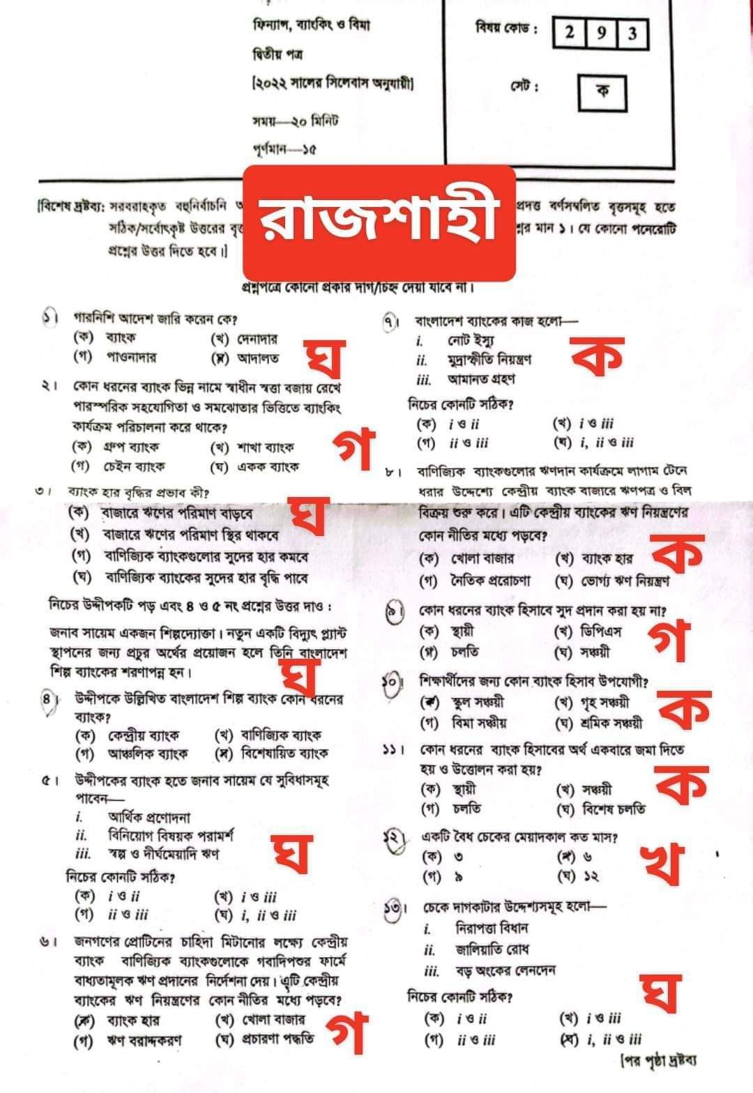 রাজশাহী বোর্ড এইচএসসি ফিন্যান্স ব্যাংকিং ও বিমা ২য় পত্র প্রশ্ন সমাধান ২০২২