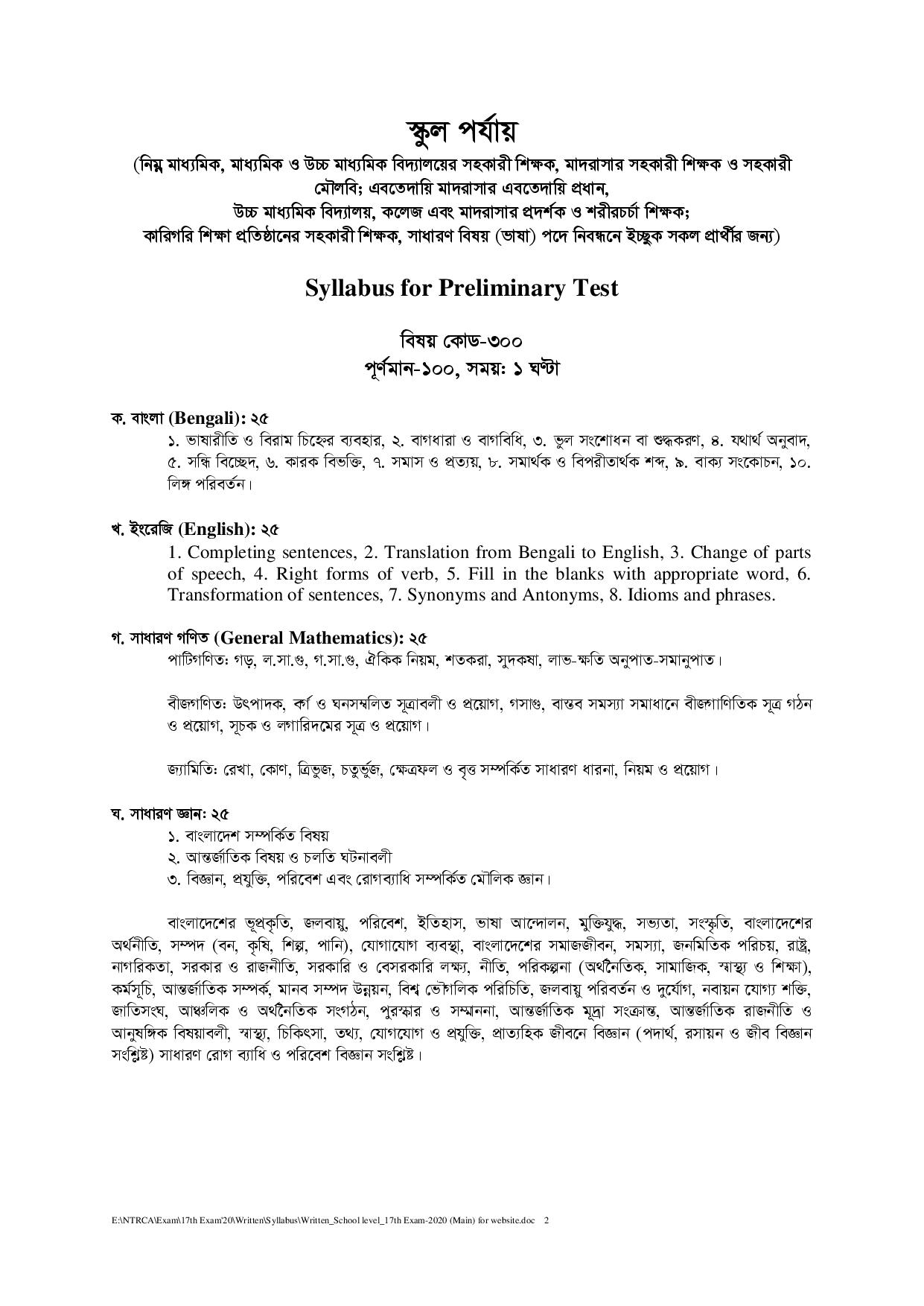 ১৮তম শিক্ষক নিবন্ধন পরীক্ষার সিলেবাস ২০২৪ (স্কুল ও স্কুল-২)