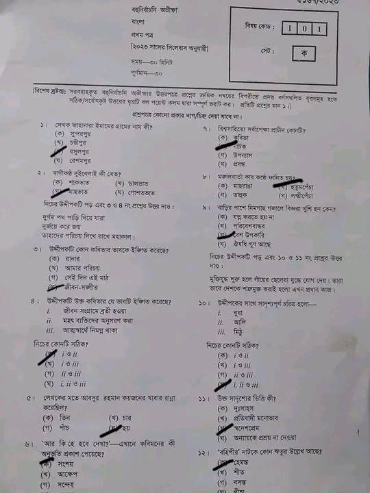 এসএসসি বাংলা ১ম পত্র বহুনির্বাচনি ২০২৩