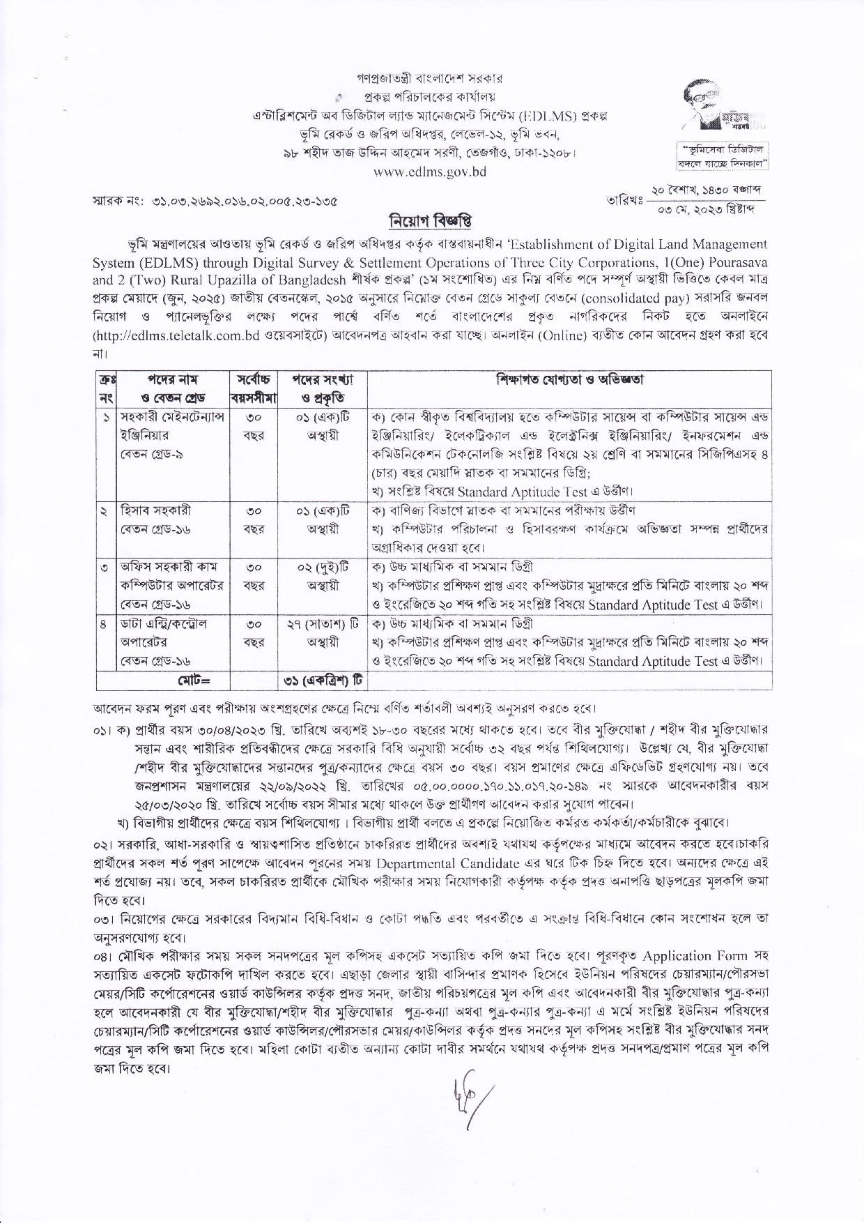 ভূমি রেকর্ড ও জরিপ অধিদপ্তর নিয়োগ বিজ্ঞপ্তি ২০২৩