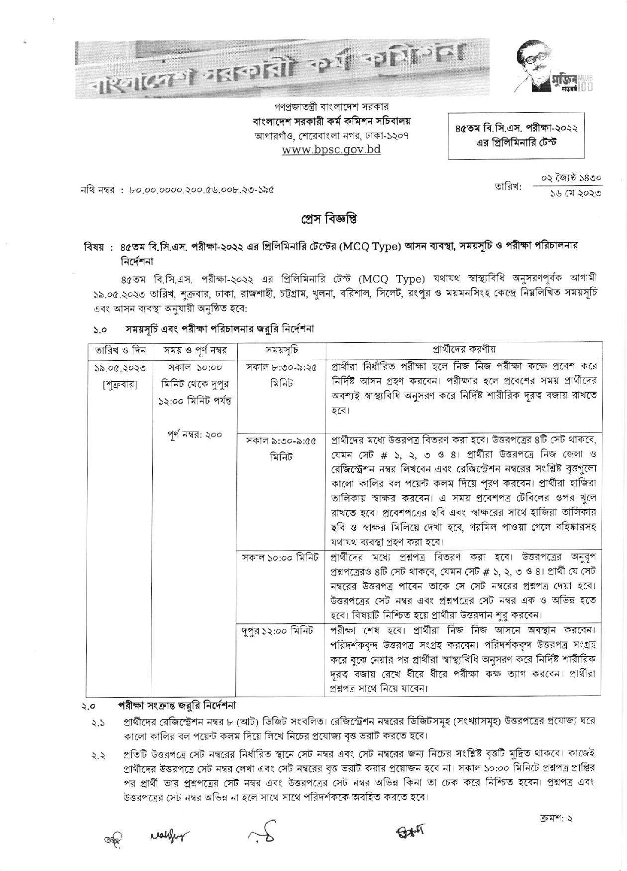 | পরীক্ষার তারিখ | ১৯ মে ২০২৩ তারিখ |