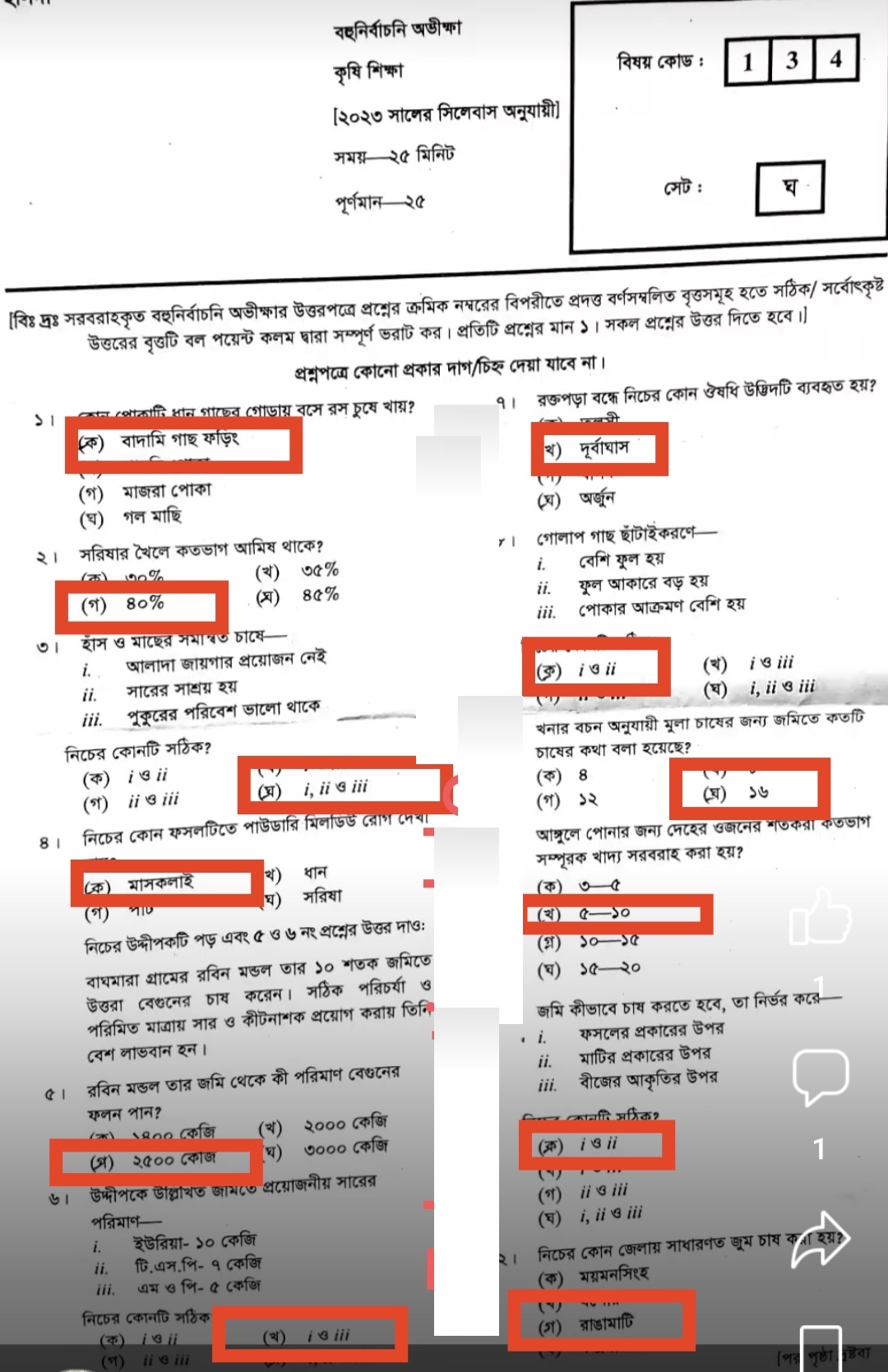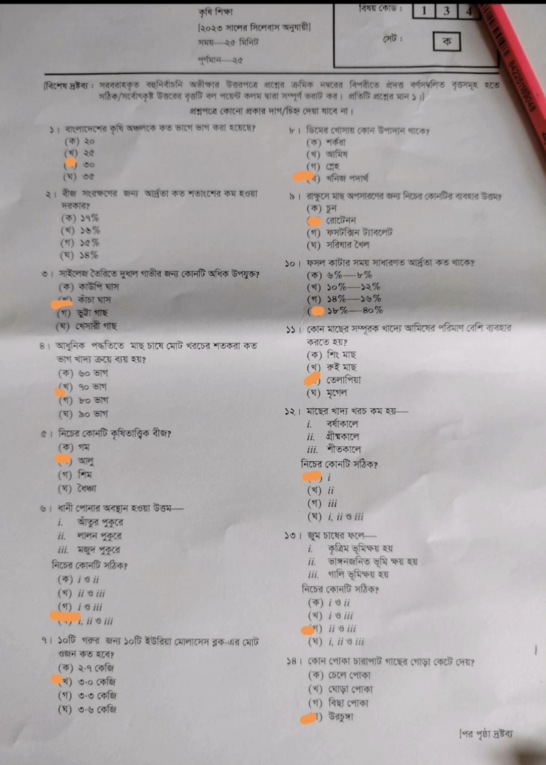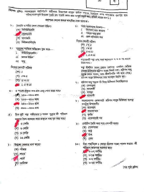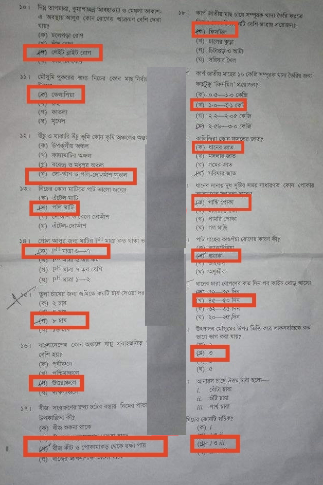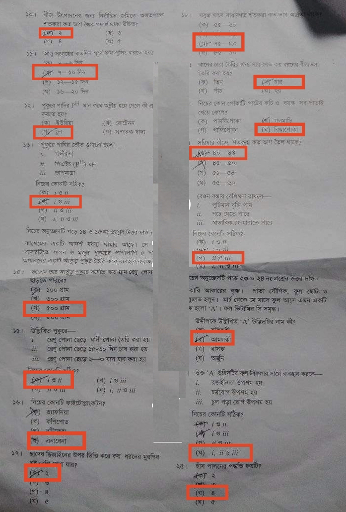 কৃষি শিক্ষা সিলেট বোর্ডের গ সেটের উত্তরমালাঃ
