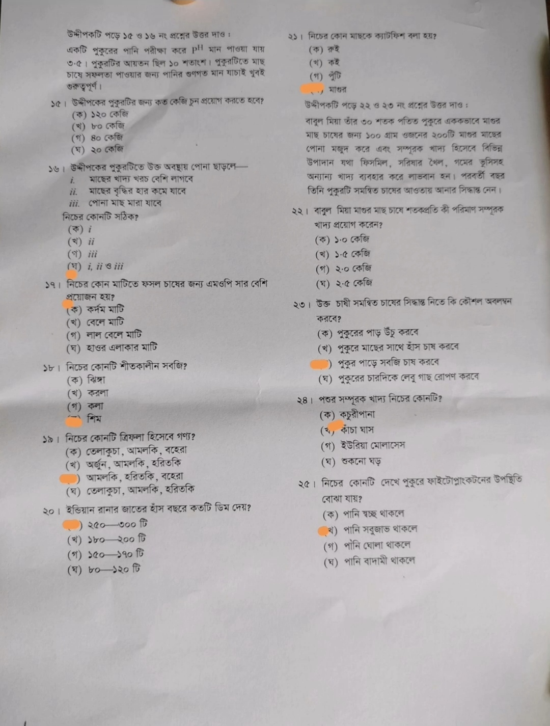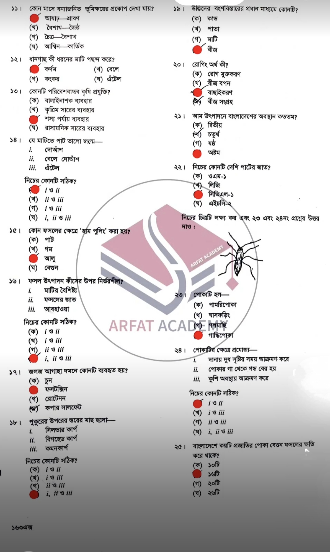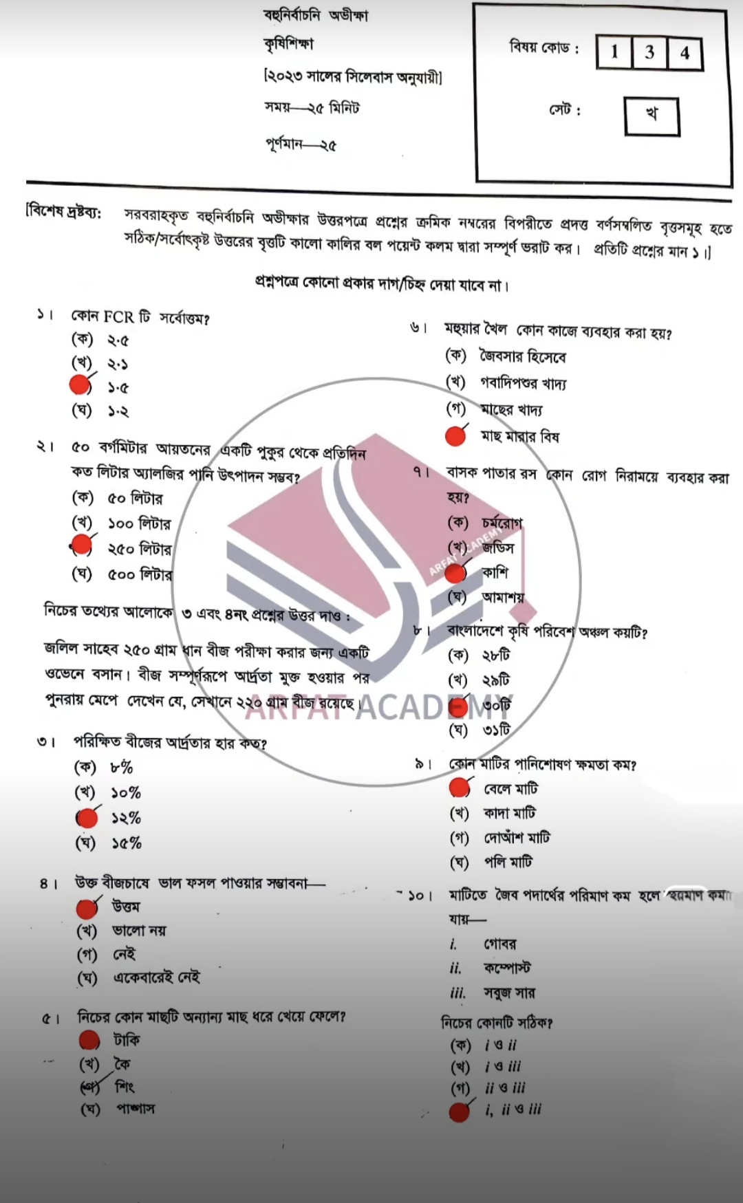 কৃষি শিক্ষা সিলেট বোর্ডের গ সেটের উত্তরমালাঃ