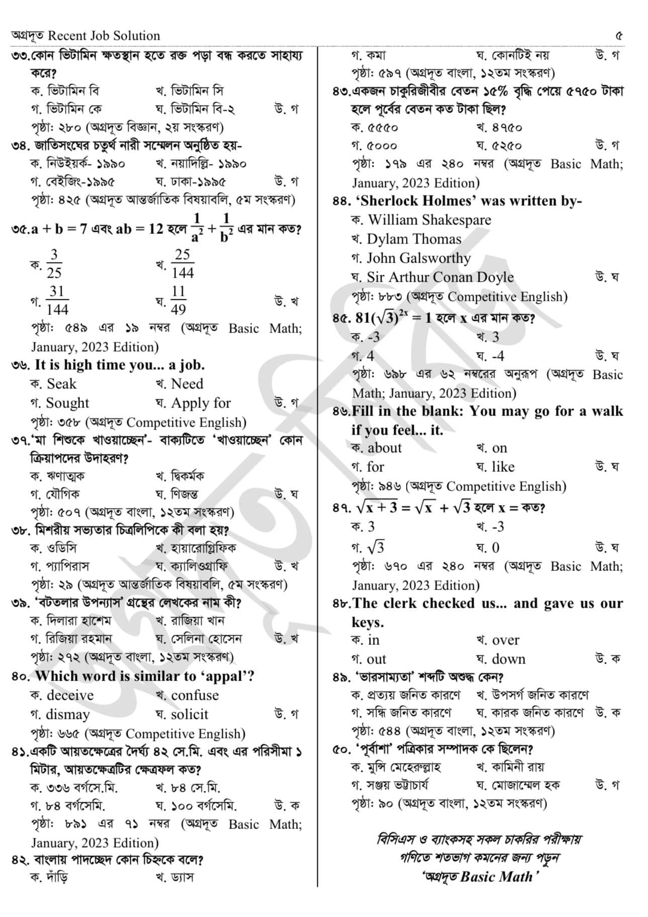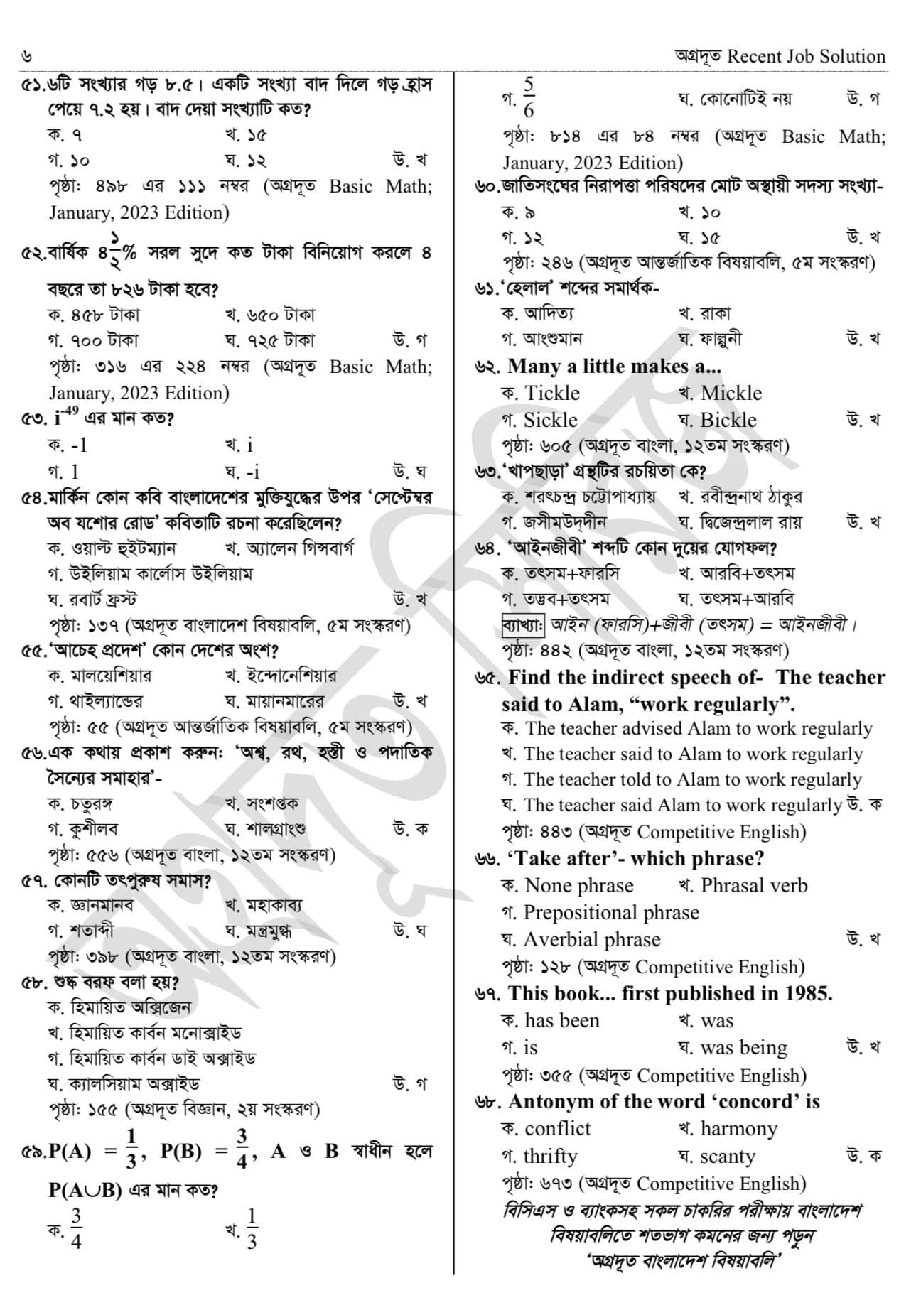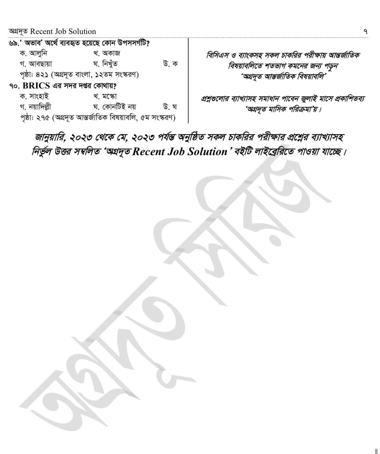 প্রশ্ন সংখা: ৭০ টি