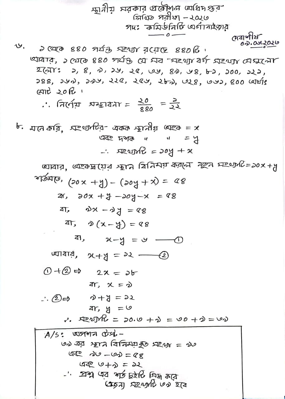 আজকে অনুষ্ঠিত LGED এর কমিউনিটি অর্গানাইজার পদের গণিত প্রশ্নের লিখিত সমাধানঃ