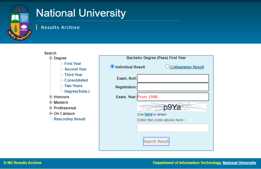 - www.nu.ac.bd/results প্রবেশ করতে হবে।