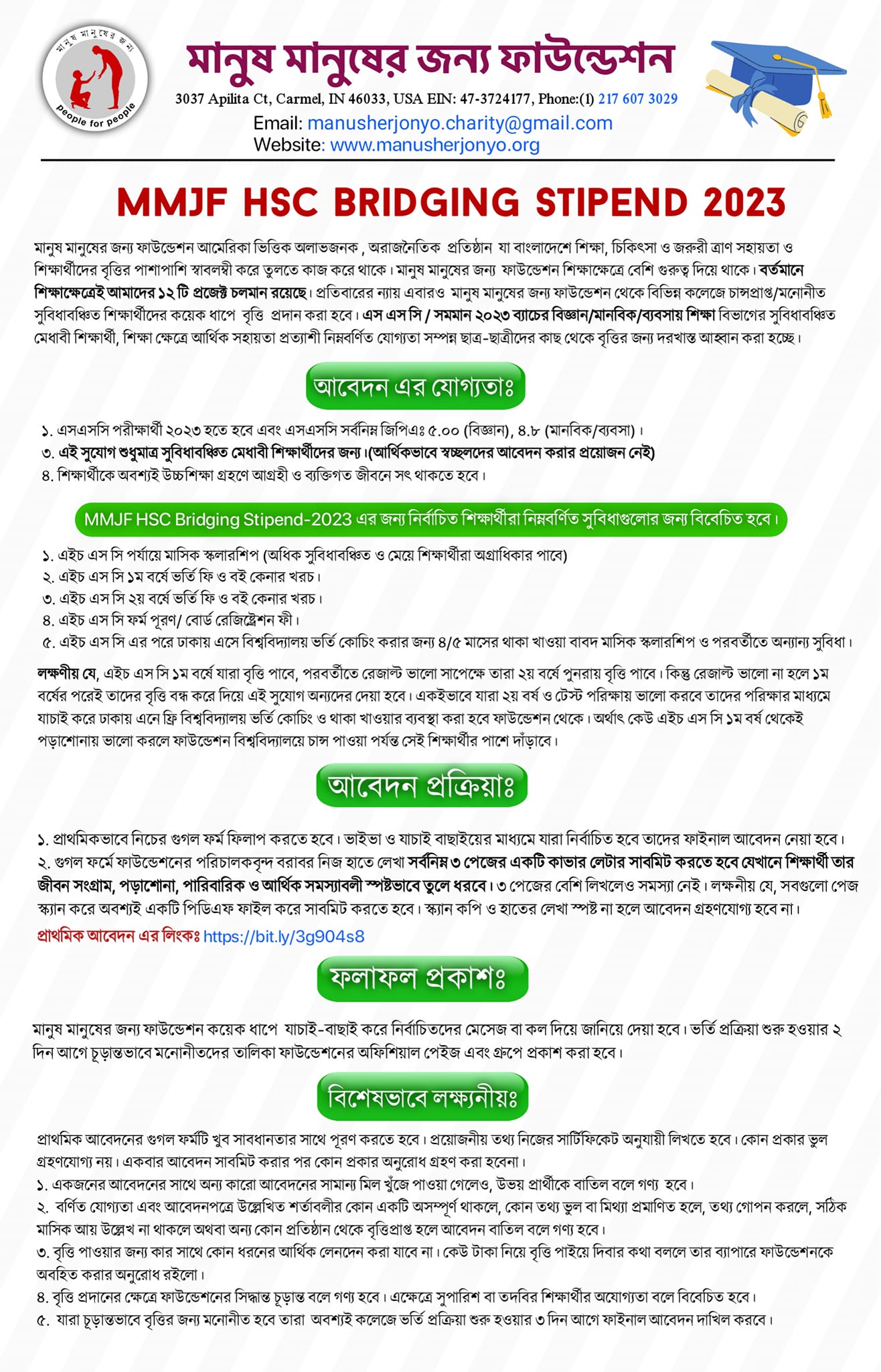 মানুষ মানুষের জন্য ফাউন্ডেশন এই ধারাবাহিকতায় এস এস সি / সমমান ২০২৩ ব্যাচের বিজ্ঞান /মানবিক/ব্যবসায় শিক্ষা বিভাগের সুবিধাবঞ্চিত মেধাবী শিক্ষার্থী, শিক্ষা ক্ষেত্রে আর্থিক সহায়তা প্রত্যাশী নিম্নবর্ণিত যোগ্যতা সম্পন্ন ছাত্র-ছাত্রীদের কাছ থেকে বৃত্তির জন্য দরখাস্ত আহ্বান করা হয়েছে।