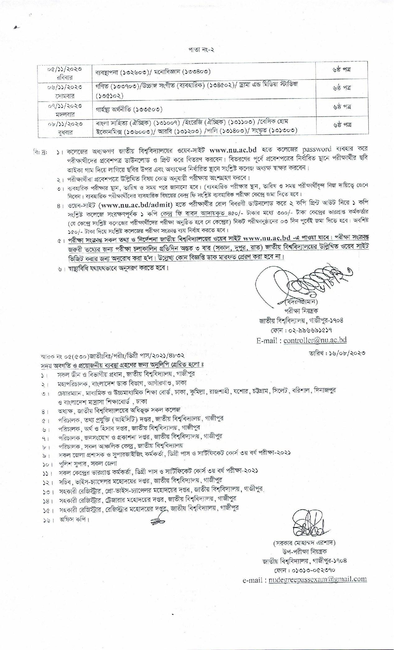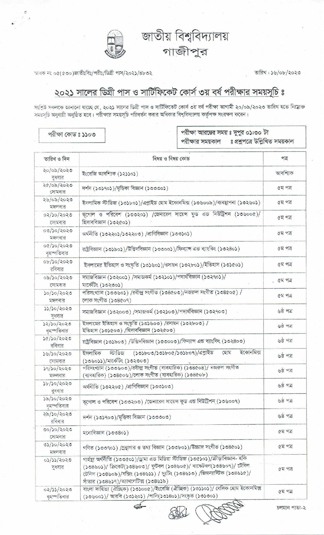 ডিগ্রি ৩য় বর্ষের পরীক্ষার রুটিন ২০২৩