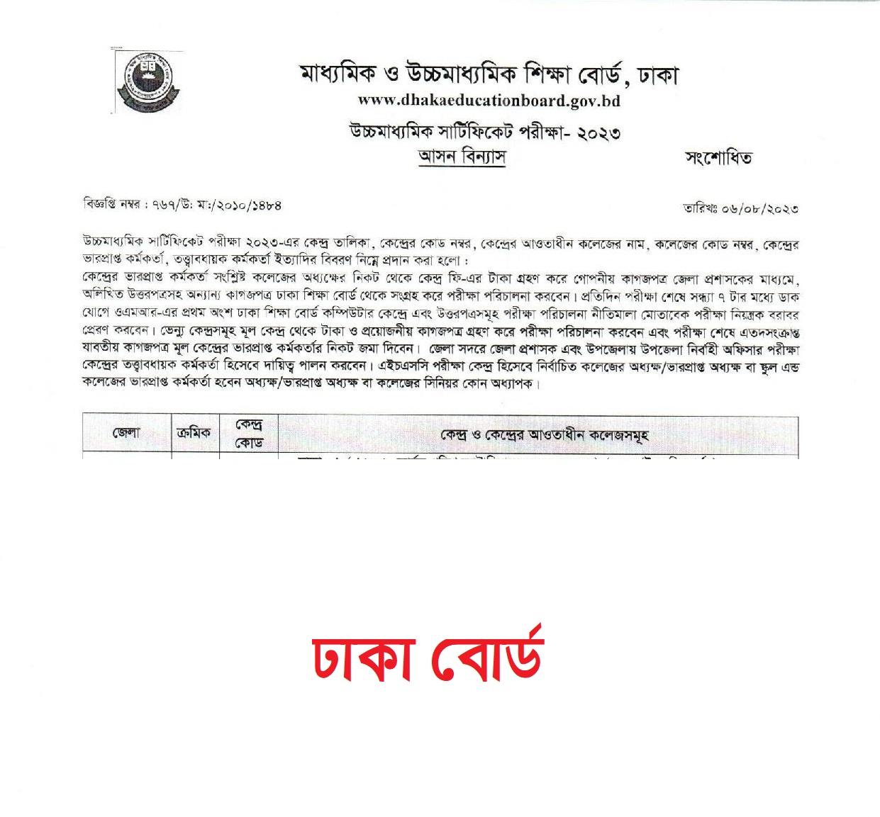 ঢাকা বোর্ড এইচএসসি আসন বিন্যাস ডাউনলোড ২০২৩